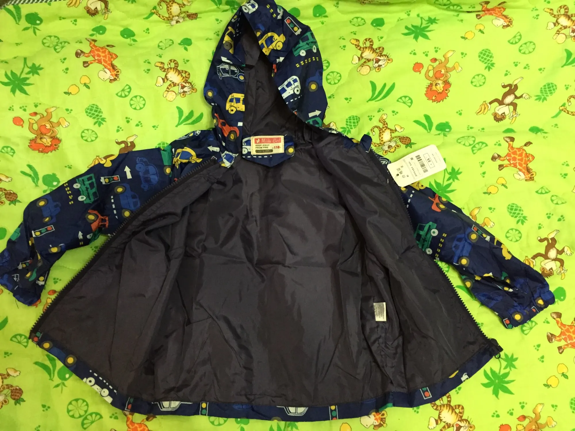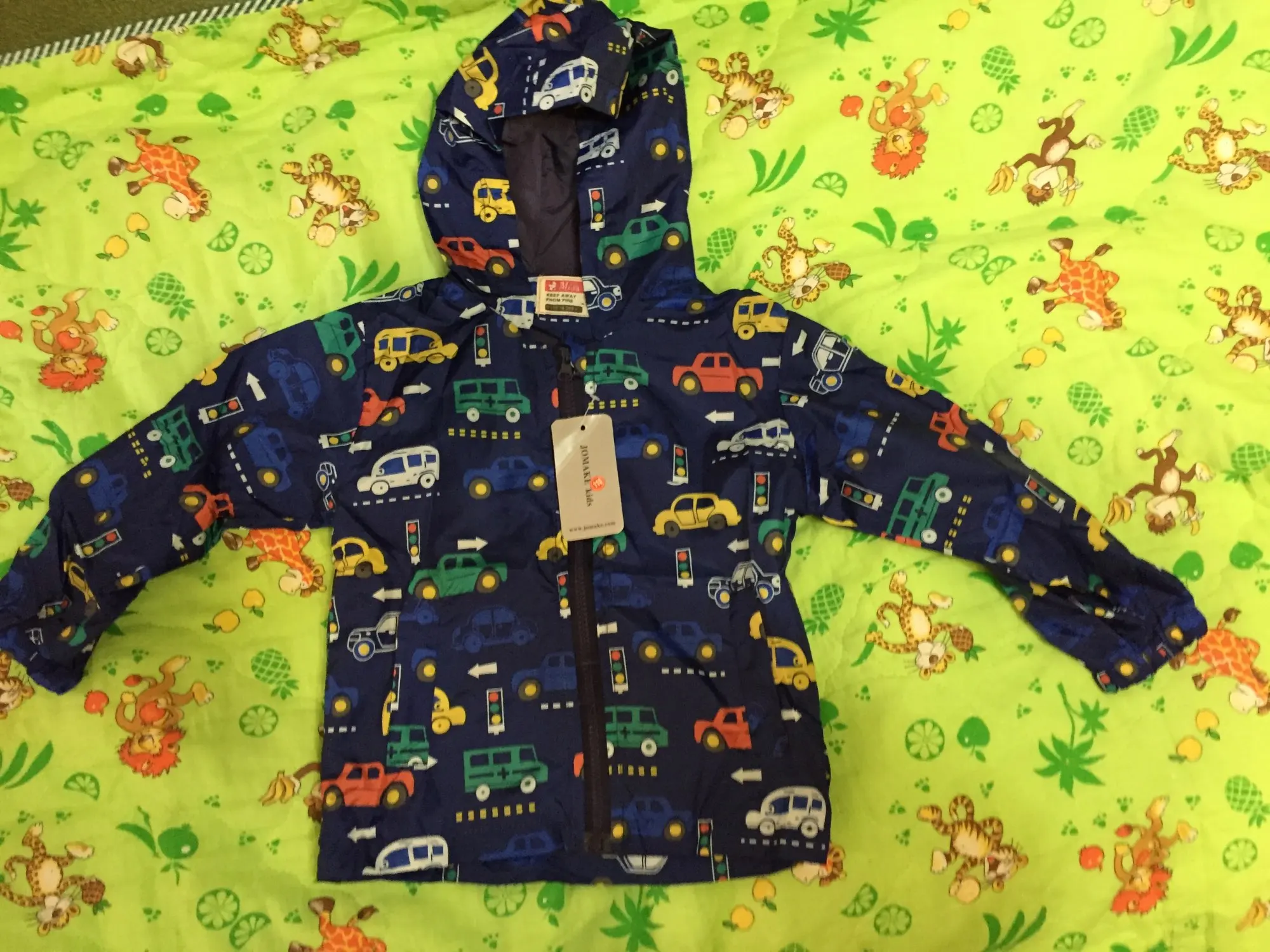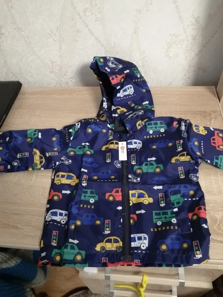 Классная ветровка. Клеенчатая. На тёплое время года отлично, особенно в прохладу и дождь. Капюшон и рукава широкие. Размер на наши 110см пока большеват, к лету будет впору, надеюсь, даже может и на второе лето хватит)) К покупке однозначно рекомендую. Спасибо!))