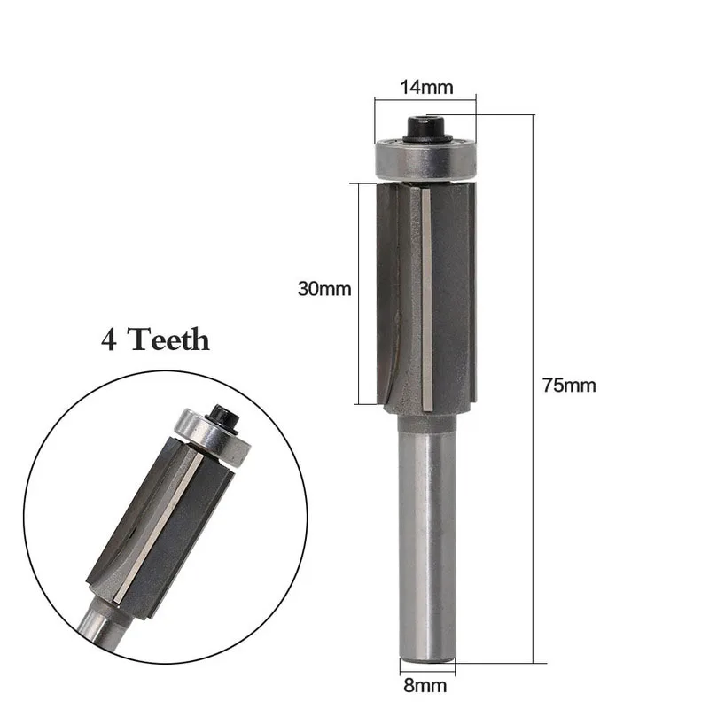 Фрезерный резак, хвостовик 8 мм, 4 лезвия, фрезы для заподлицо, отделки дерева фрез с концевой ФРЕЗОЙ подшипник, деревообрабатывающий инструмент, 1 шт.