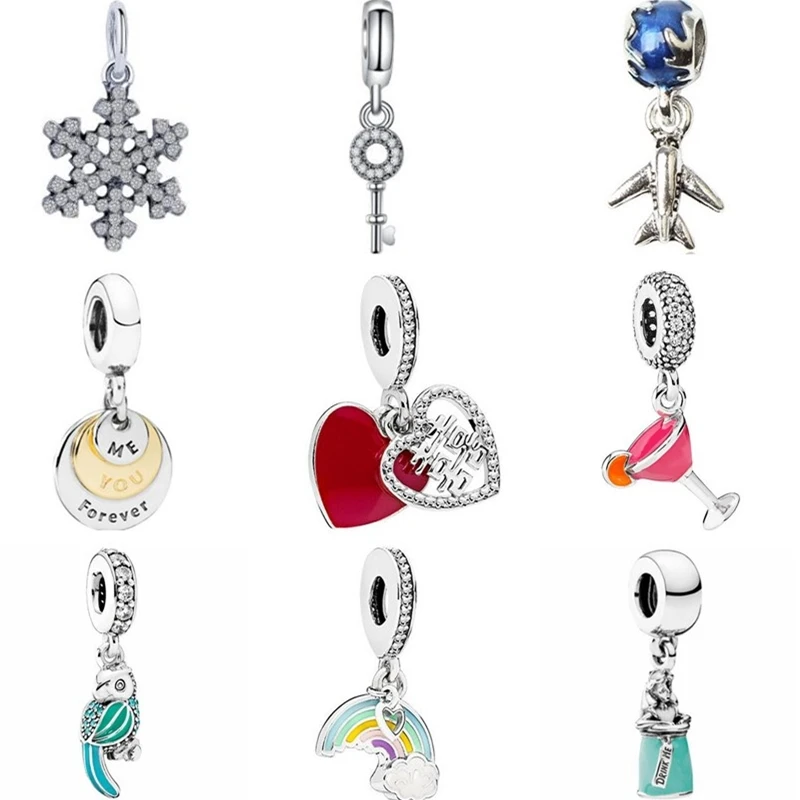 Btuamb новые модные эмалевые бусины для винного бокала сердце Радуга листья Кот коготь Ключ Подвески Бусины Подходят для брендовых браслетов для женщин DIY ювелирные изделия