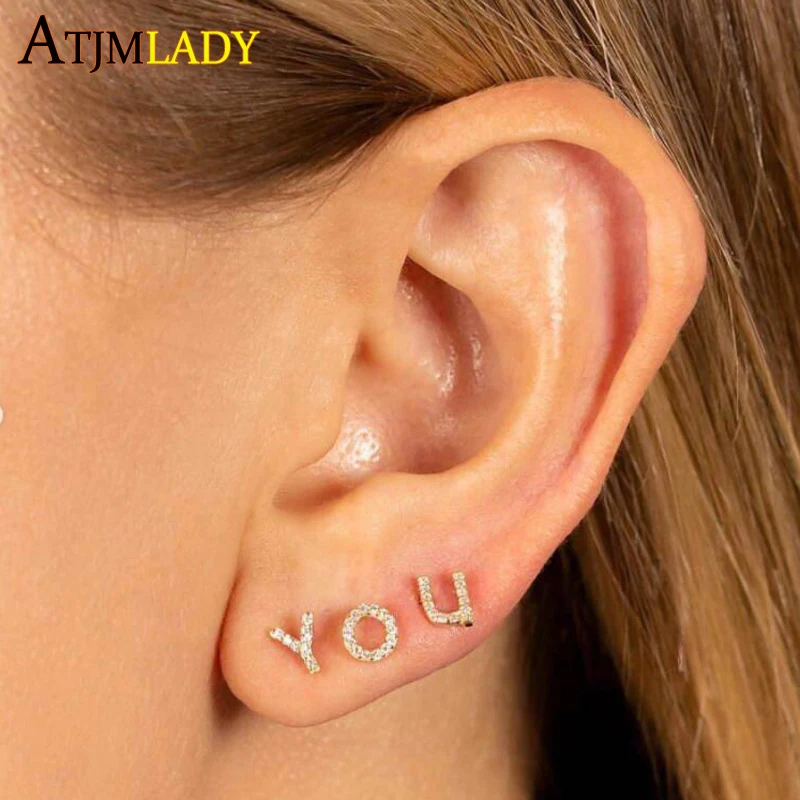 925 Стерлинговое Серебро 26 оригинальные очаровательные ювелирные изделия с буквенным принтом AAA кубический цирконий буквы Алфавит мини милые простые серьги-гвоздики