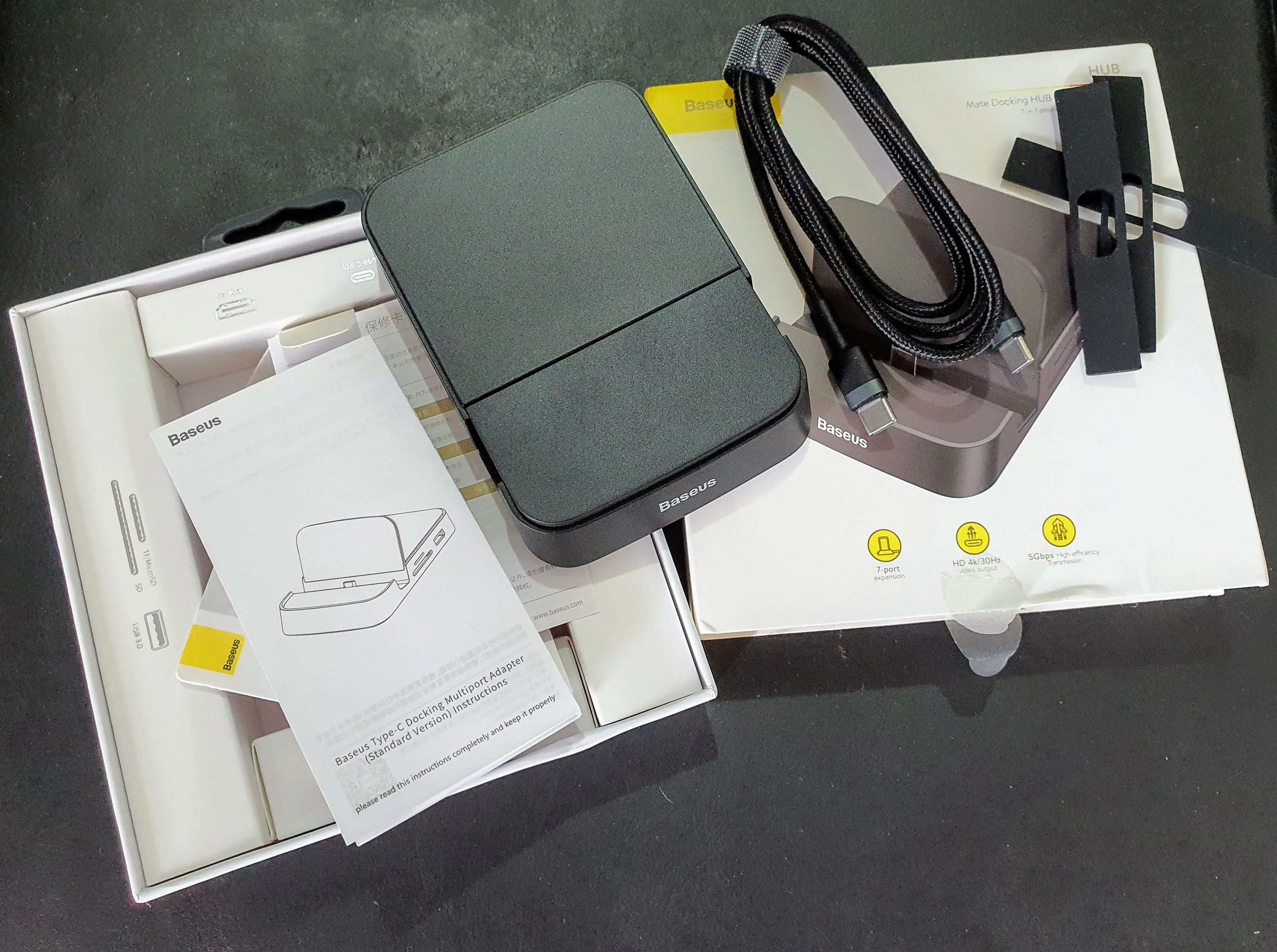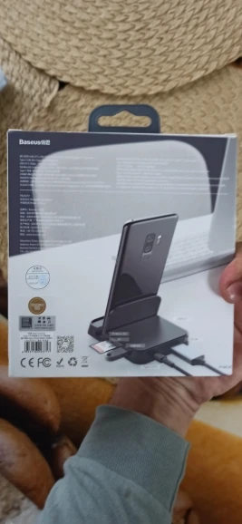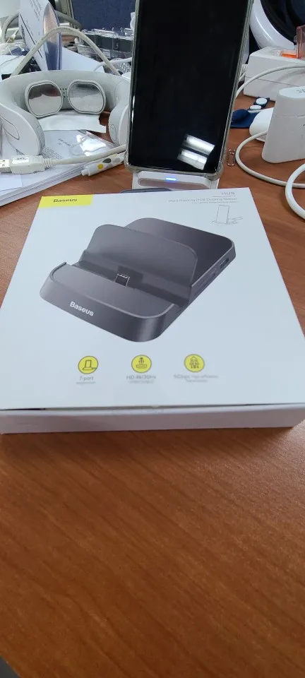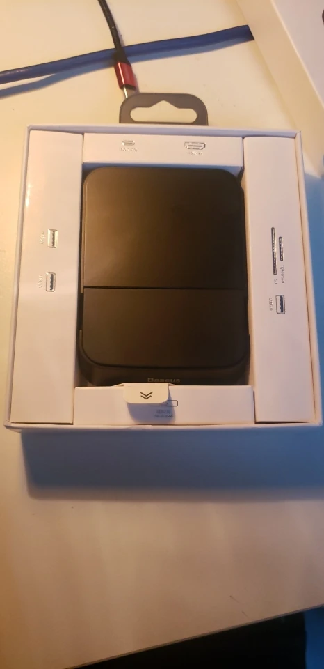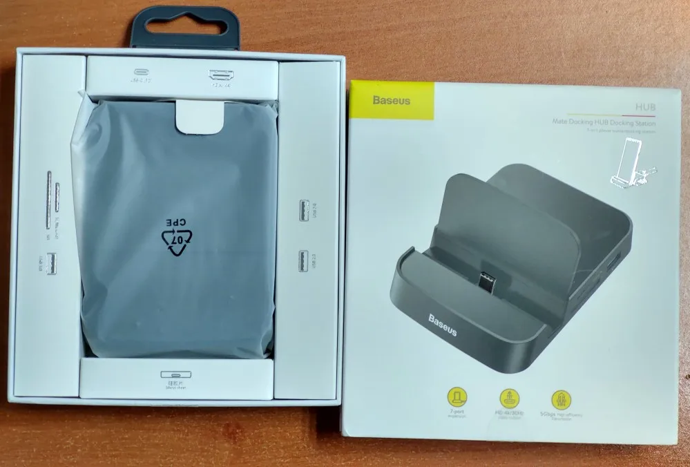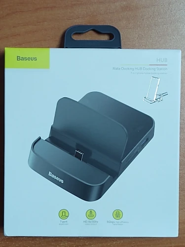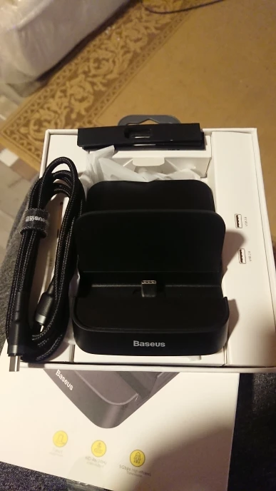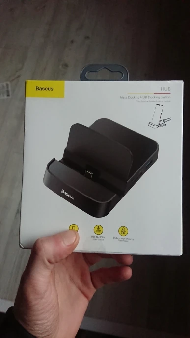 Очень доволен: Высококачественная упаковка, высококачественный кабель usb c и хорошая презентация. Пластик ощущается немного дешево, но на самом деле довольно прочный. Разъем usb c, куда вставлять смартфон/планшет, длиннее, чем обычно, но поставляется с набором резиновых полос для приклеивания к док-станции, которая подходит вашему смартфону, независимо от толщины чехла.