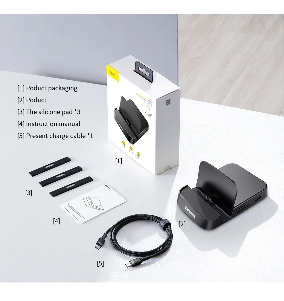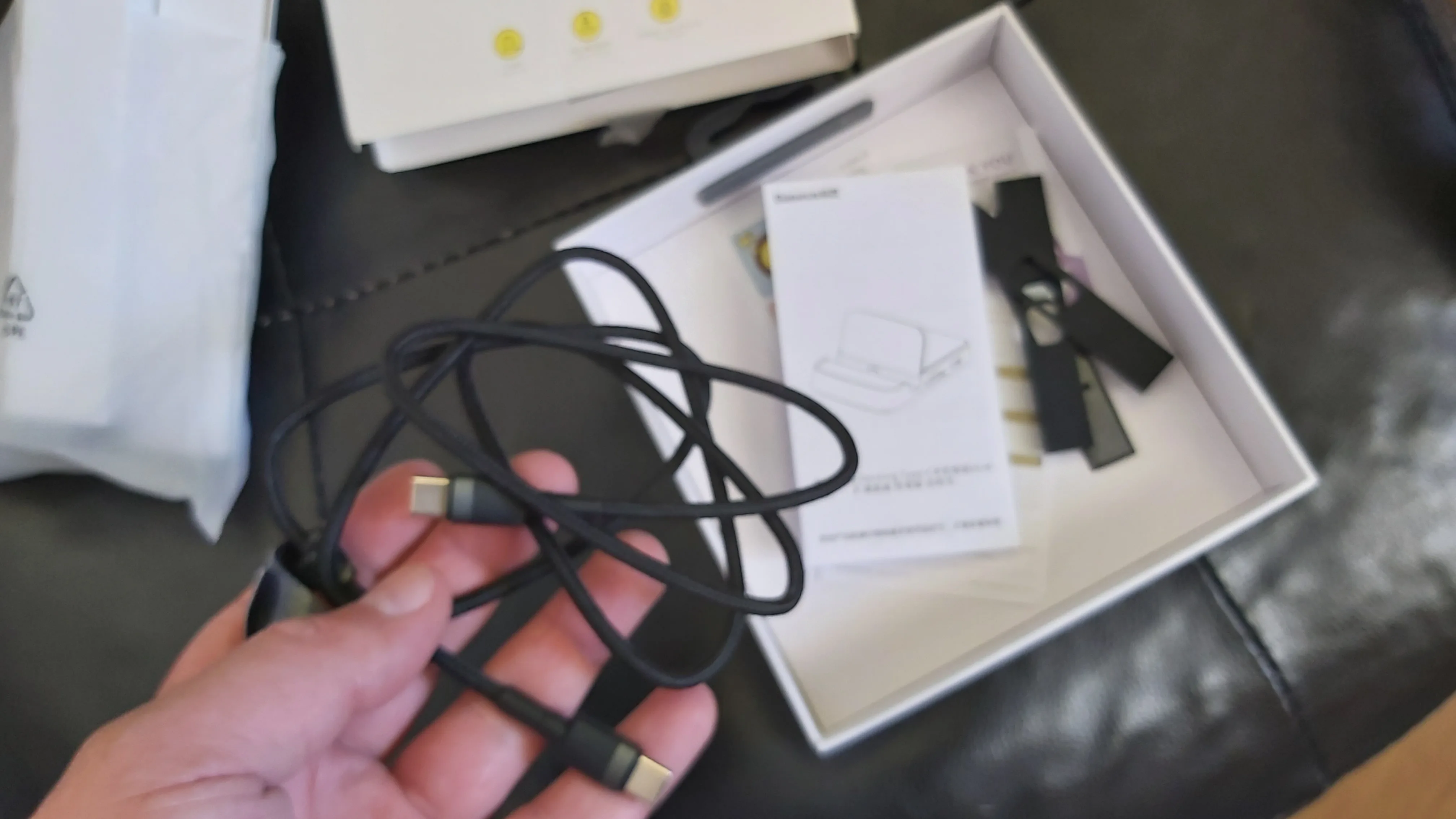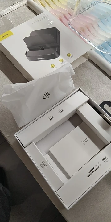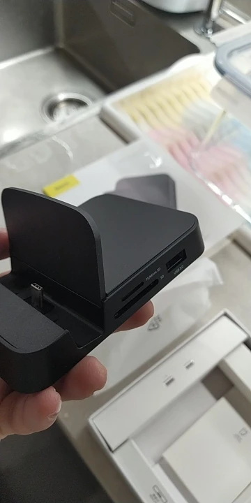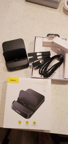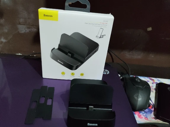 Очень доволен: Высококачественная упаковка, высококачественный кабель usb c и хорошая презентация. Пластик ощущается немного дешево, но на самом деле довольно прочный. Разъем usb c, куда вставлять смартфон/планшет, длиннее, чем обычно, но поставляется с набором резиновых полос для приклеивания к док-станции, которая подходит вашему смартфону, независимо от толщины чехла.