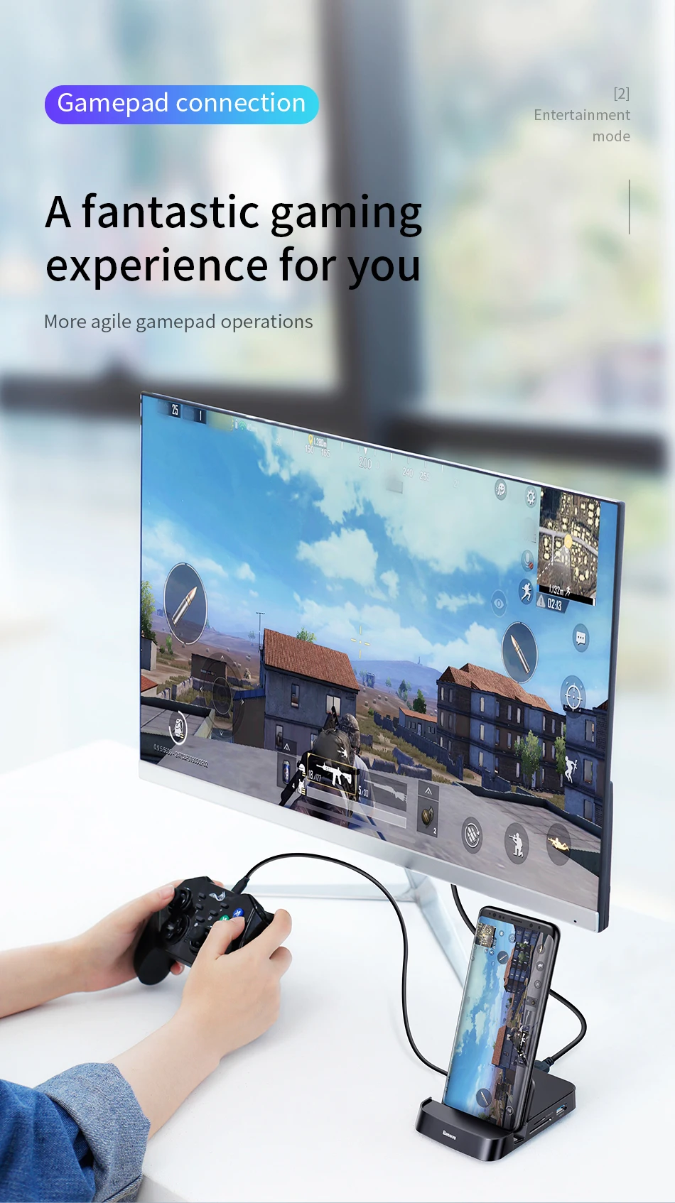 Док-станция Baseus для Samsung S20 S10, док-станция с USB C на HDMI, адаптер питания для Huawei P30