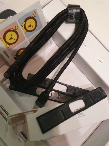 Все ок, в комплекте кабель type-c-type-c. И прокладки под телефон резиновые. Всё отлично