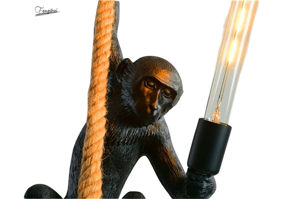 Современная лампа в форме обезьяны подвесные светильники Лофт веревка искусство Nordic Реплики смолы подвесной светильник внутреннего освещения украшения
