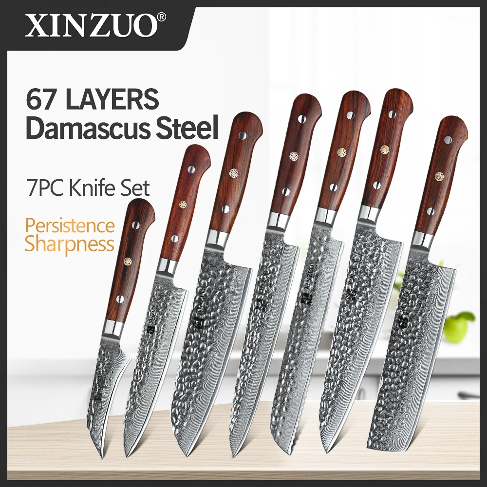 Ножи XINZUO из дамасской стали, 7 дюймов, с ручкой из розового дерева