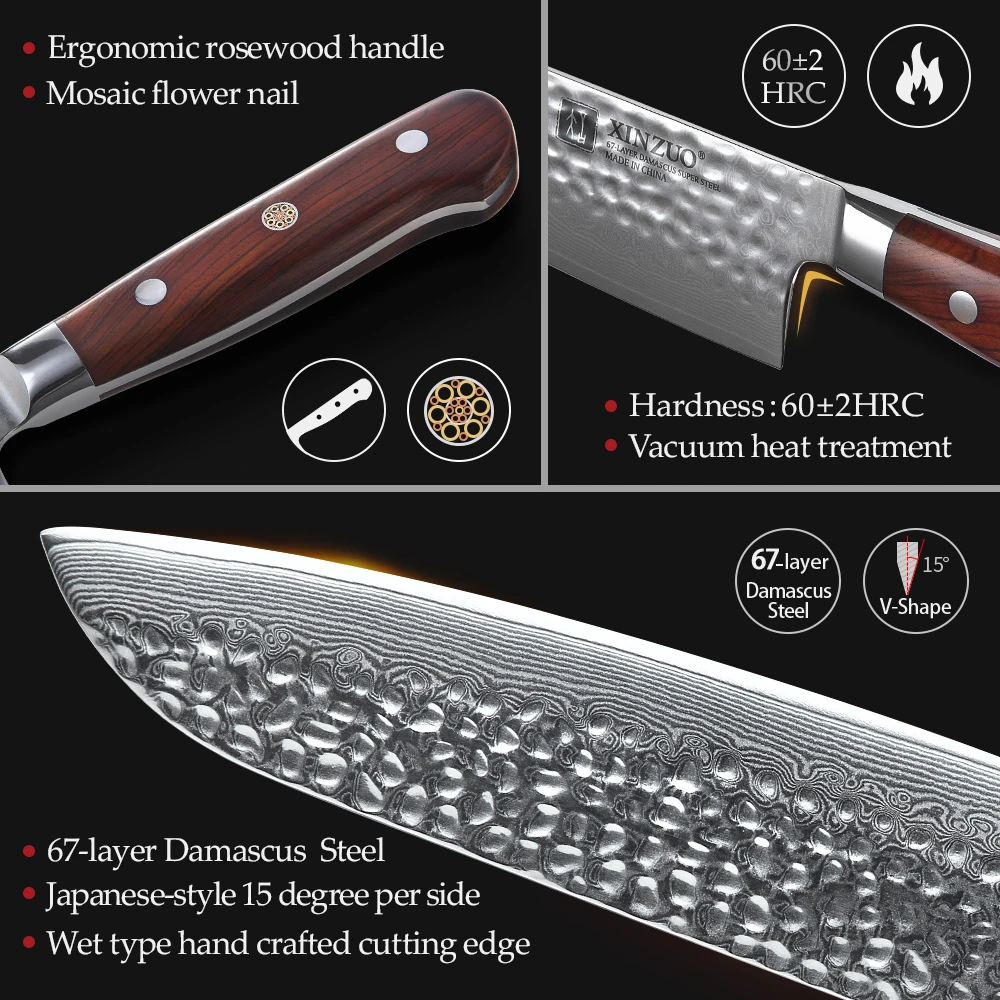 Ножи XINZUO из дамасской стали, 7 дюймов, с ручкой из розового дерева