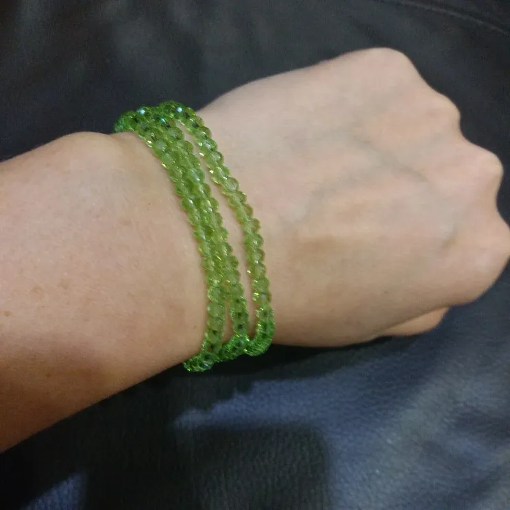 Цвет насыщенный глубокий зеленый теплый. Отличного качества рондели, ровно огранены, без сколов, без брака, хорошая форма, отверстие по центру - не кривые не косые, не торчат из общего ряда как бывает иногда. Очень рекомендую. Заказ оформлен 21 сентября, прибыл 9 октября в Краснодар. Доставка Aliexpress Standart - при пересечении границы трек-номер отправления сменился. В один день я делала заказы у трех разных продавцов, так вот в одном общем пакете с одним трек-номером приехали все три заказа - очень удобно, кто-то позаботился и объединил посылочку. Большое спасибо за сервис и за качество! Теплый привет из России!