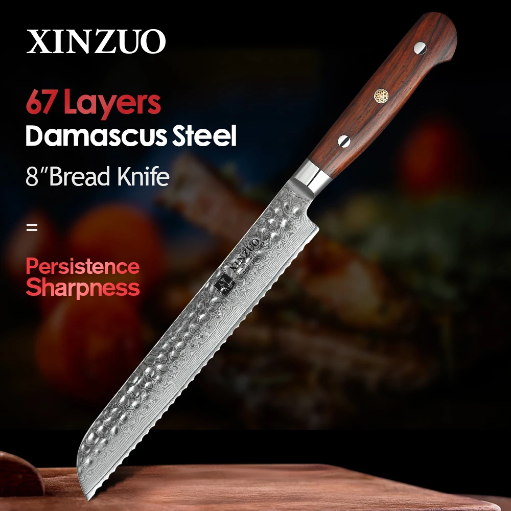 Нож для хлеба XINZUO из дамасской нержавеющей стали, кухонные прибо...
