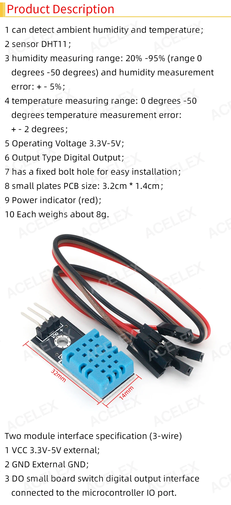 Новый датчик температуры и относительной влажности DHT11 модуль с кабелем для arduino Diy Kit