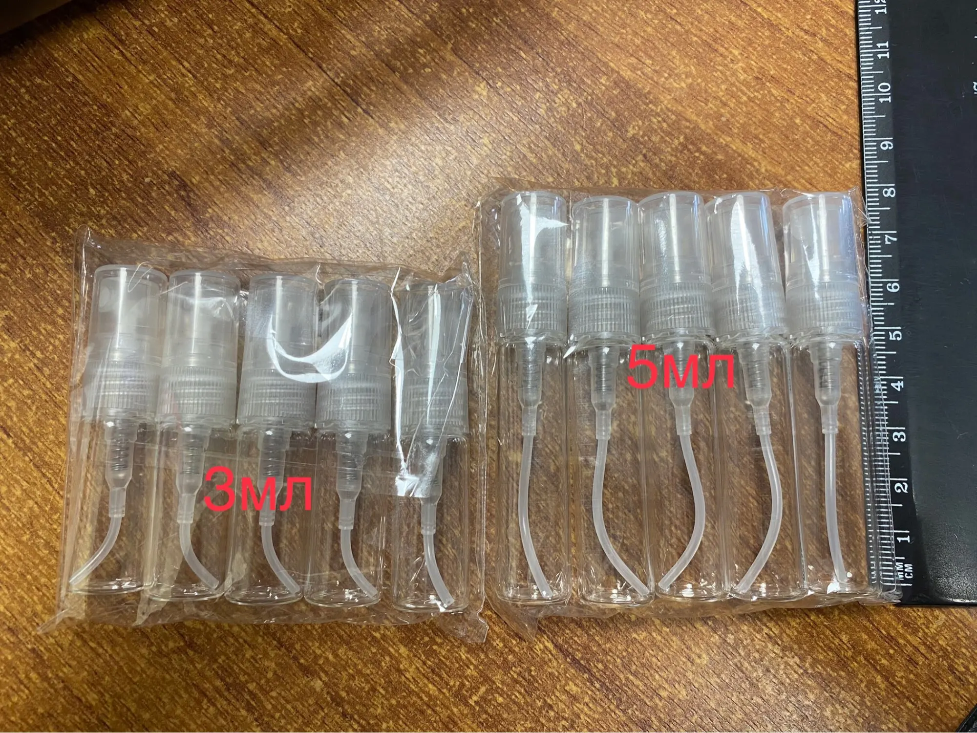 заказывала флаконы по 5мл - думала подойдут в мини-флакон в металлическом корпусе от этого продавца.не подошли: они тоньше и выше.ну да ничего.все 5 штук проверила: пульверизаторы исправные, колпачки держаться плотно.упаковка посылки надёжная.продавцу спасибо большое за качественный товар.