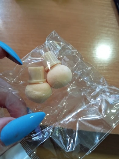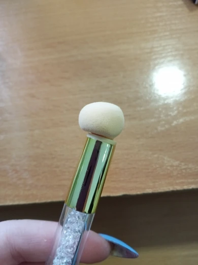 Сколько можно совершать одну и ту же ошибку ? Вы читаете отзывы вообще ваших покупателей? Все пишут, что приходит сильно замятый спонжик. Я не исключение, мне тоже такой пришёл. Вообще 3 поставила бы звёзды, но эта вмятина вроде некритична. Сама по себе «кисточка», так ее назовём, очень красивая, дополнительные спонжи пришли