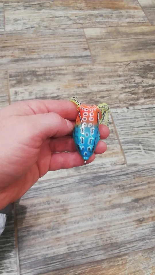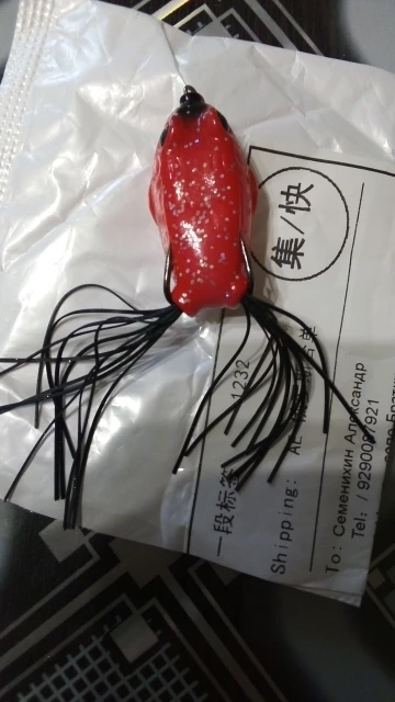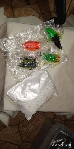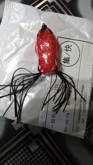 Заказал 17.08.2020, получил в Ахтубинске 03.09.2020. Доставка: "AloExpress Saver Shipping" Всего два статуса: "принято почтой Китая..." и "Ожидает адресата..." Пришло в белом пупырчатом конверте. Всё лягушки 13гр. кроме оранжевой, она 12гр., но только она имеет правильное положение в воде, остальные как на фото (ограничения в 5 фоток). Полностью проверить не удалось, но на местный жабовник на Ахтубе выбежал проверить. Щурёнок делал 5 попыток, то кроме как прорезать бочину приманке у него ни чего не удалось. За то жаброн, решив что это резиновая женщина для него, ухватил приманку и чуть было не износиловал, еле вырвал приманку из цепких лап бородавчатого маньяка! Правда, так и было, не вру! У жёлто-чёрной (которая на линейке) и оранжевой (в бокале) лягухах глаза вклеяны, на остальных зелёных нарисованные. Но вклеянные отвалились от укуса щурёнка. Думаю что работать будут при подходящих условиях (сезон, погода, место и т.д.). Долго не писал отзыв, хотел лучше испытать, но нет времени.