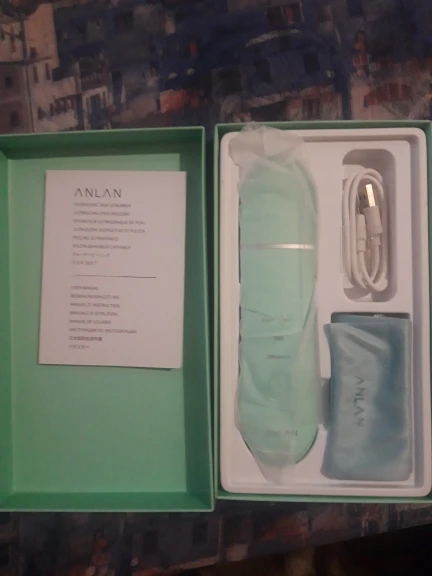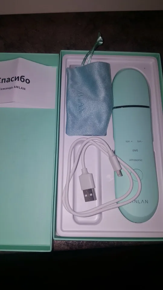 Очень быстрая доставка. Товар выглядит качественно. Есть инструкция на русском языке, мешочек для хранения, зарядный провод. Пользуюсь прибором меньше недели и пока не поняла, есть от него толк или нет. У сына большие угри не убирает.