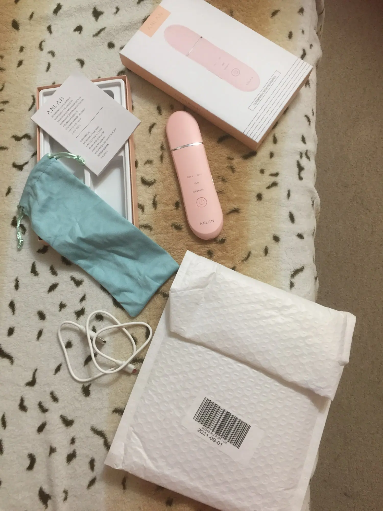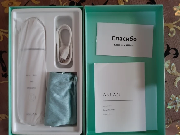пришло быстро. комплект неплох, кабель, ИНСТРУКЦИЯ НА РУССКОМ, мешочек для хранения. Тестирую месяц, штука рабочая, но не стоит ожидать эффект волшебной палочки. нужно время) с этим гелем(на фото) эффект хороший, но аккуратно (краснеет кожа) после геля и скраббера использую д-пантенол.