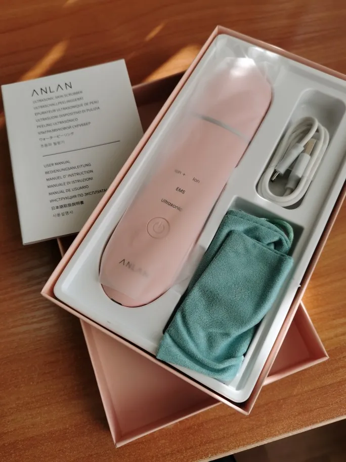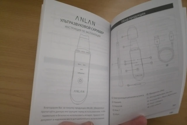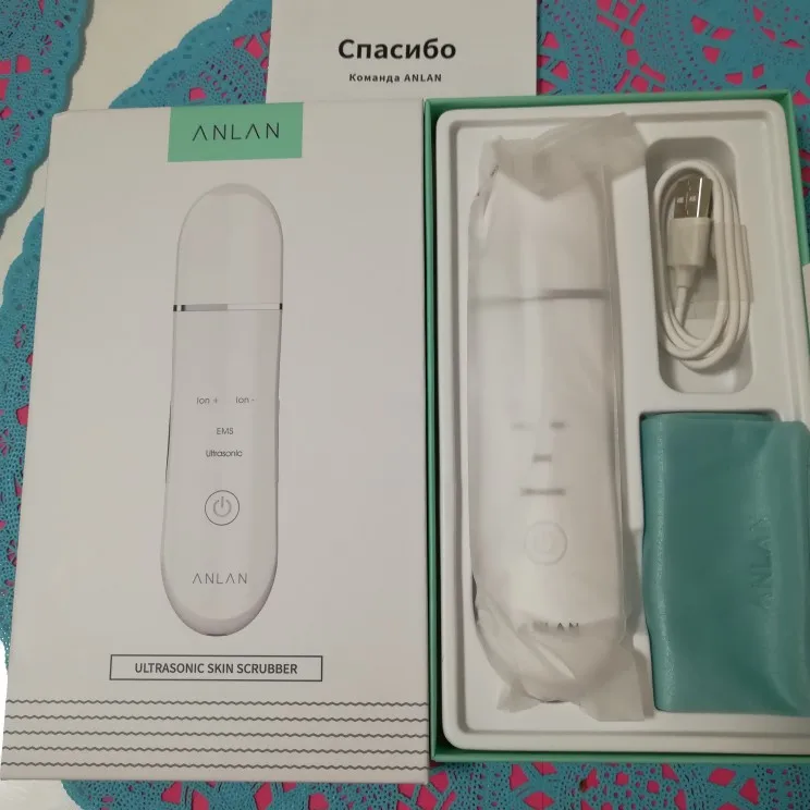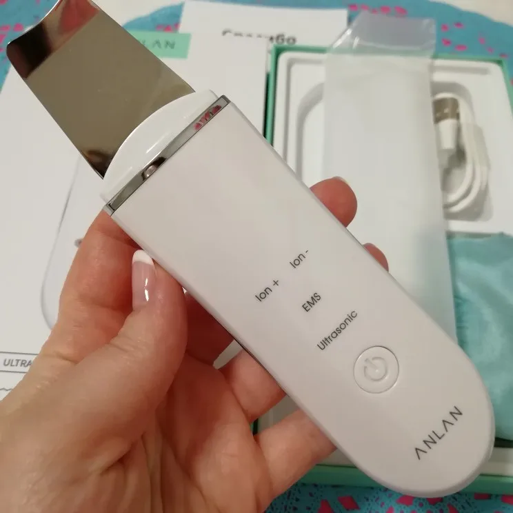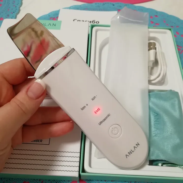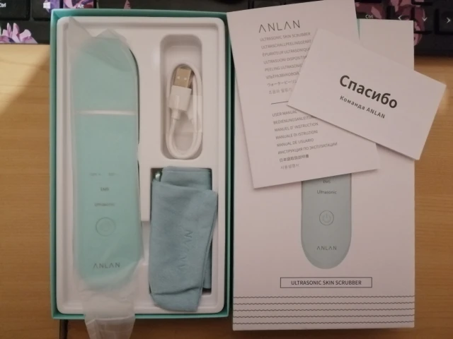Отличный скруббер! Доставка, быстрая курьером. Приходит заряженным. Инструкция на русском языке.Упаковка такая, что можно сразу на подарок. В коробочке есть зарядка, мешочек для хранения. Он шикарный! Для домашнего ухода просто супер! У аппарата четыре режима работы: Ионновый импорт, ионновый экспорт, ультрозвуковая технология и микро- ток Ems. Товар качественный. Уже пользовалась. Понравилось. Покупайте смело. Тем более ,что положительных отзывов больше 4тыс.