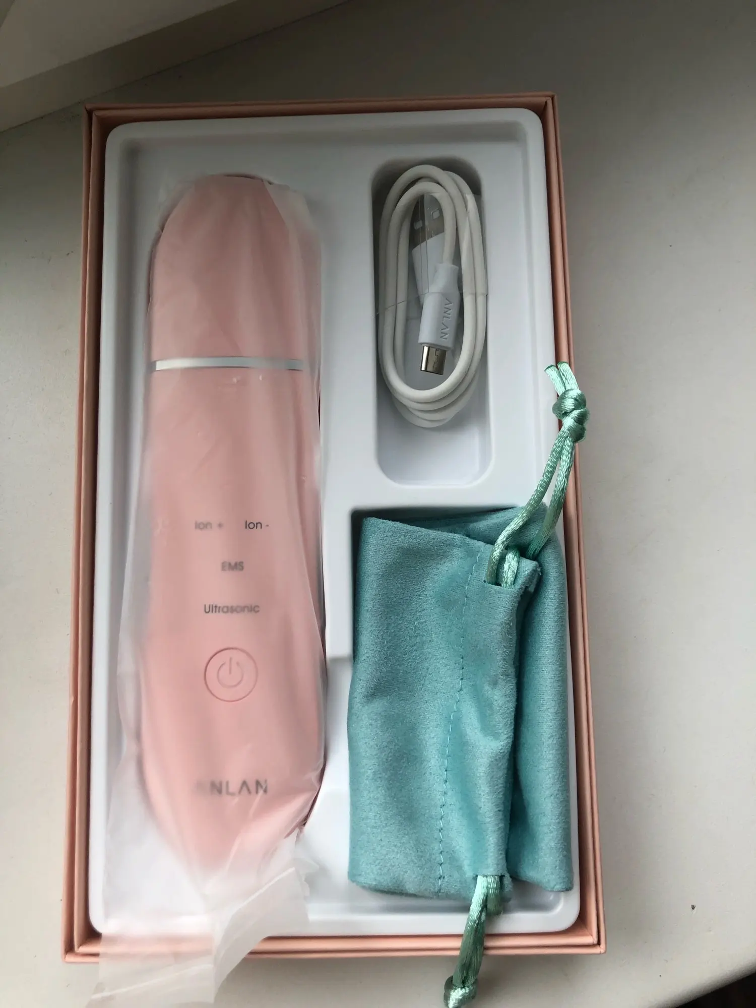 Заказала прибор во время скидок на 11.11. Использовала купон, поэтому аппарат вышел по цене очень выгодно. Пришёл достаточно быстро, около недели. Доставил курьер до двери. Коробка была в плёнке, внутри все инструкции, в комплекте был мешочек и провод для зарядки. Аппарат хороший, пользовалась пару раз. Эффекта как такового не заметила, но что-то чистит и находит. Пользовалась прибором после ванны, когда лицо было распаренным, при использовании протирала лицо ватным диском с водичкой, тк пока нет геля, но очень хочется попробовать со спец.гелем. Для домашнего ухода подойдёт.