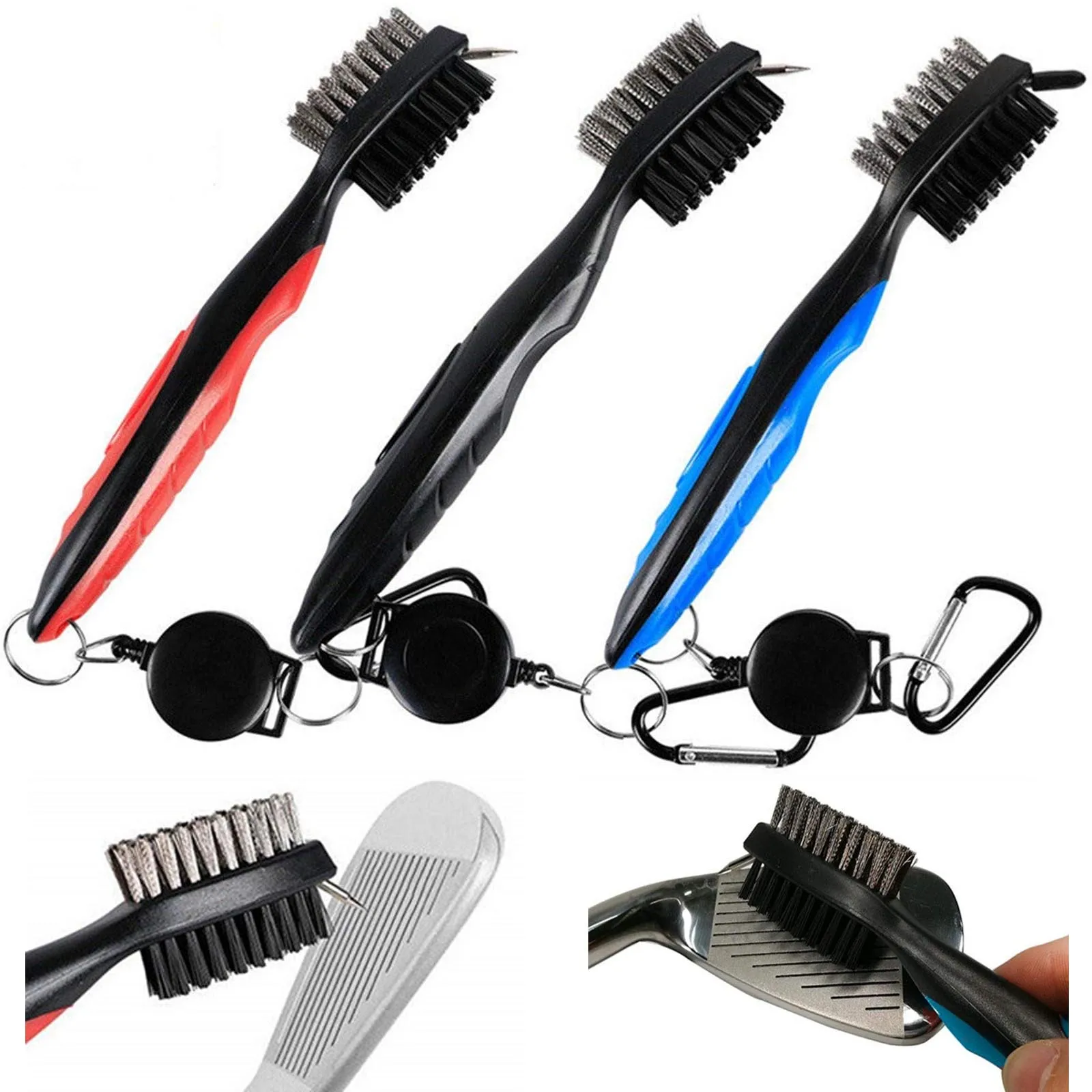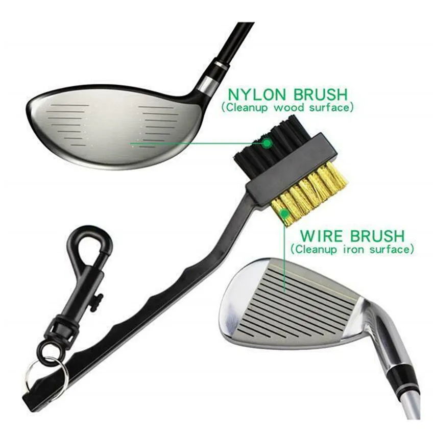 Гольф кисти для клуба, Очищающий Инструмент крюк для поясная сумка Чистящая обувь щетка 2 кристалла по бокам клюшки леса Железный Клин канавка под шарики клюшки для гольфа Прямая доставка