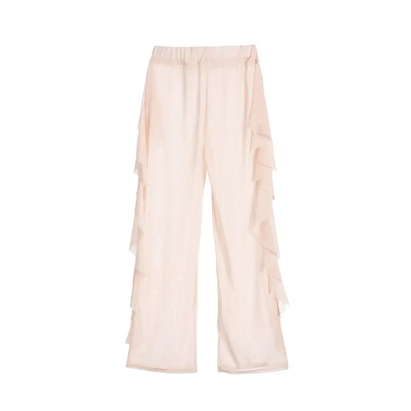 Сексуальные женские прозрачные брюки, накидка на бикини, сетчатые плавки с оборками, длинные брюки свободного кроя, пляжная одежда, купальник, 2021