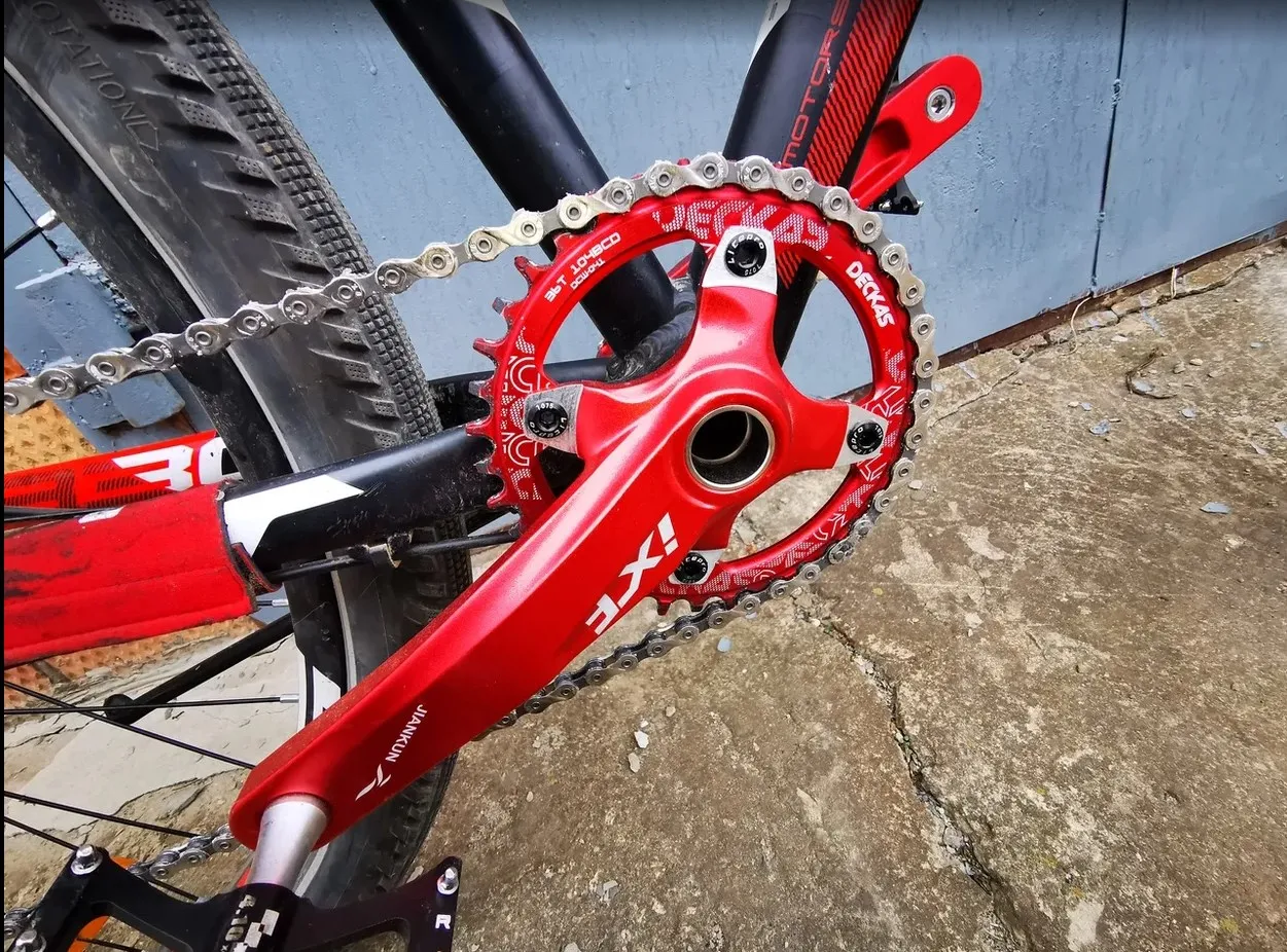 Сделали трансформацию от 3x8 до 1x11 с помощью этого набора коленчатых устройств. Качество почти идеальное, но были некоторые проблемы с установкой одной из педалей. Винт не прошел весь путь. Большая ось прочная, а вес низкий. Велосипед потерялся 1 кг при переключении коленчатого набора и новой кривошипной коробки Очень легко устанавливается. Потрясающе-и цвета рядом с велосипедом-порно :-)