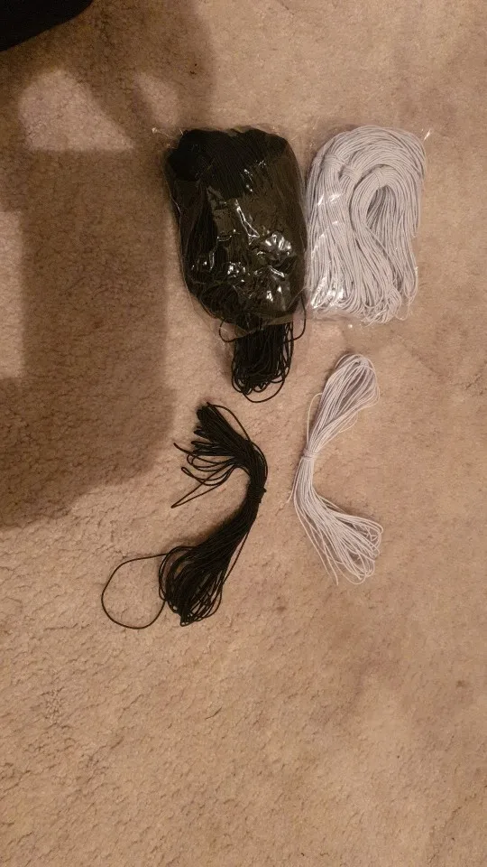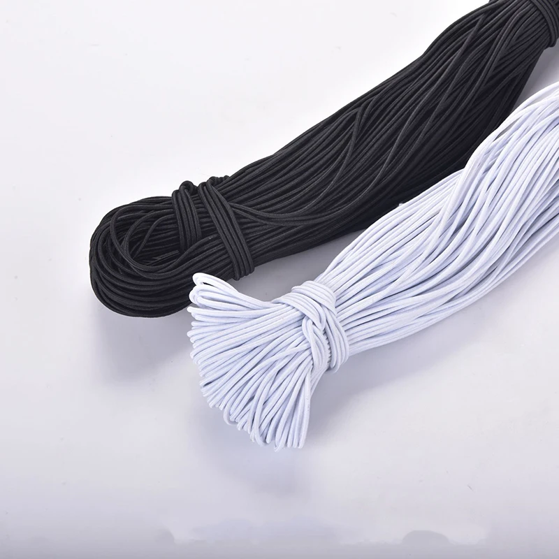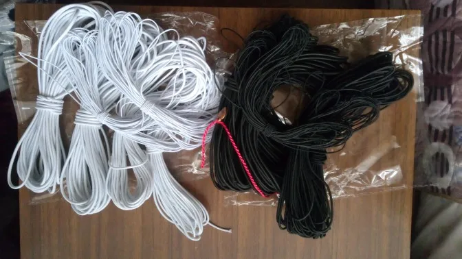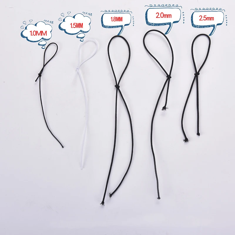 Лента эластичная круглая, 1 мм, 2 мм, 3 мм, белая, Черная