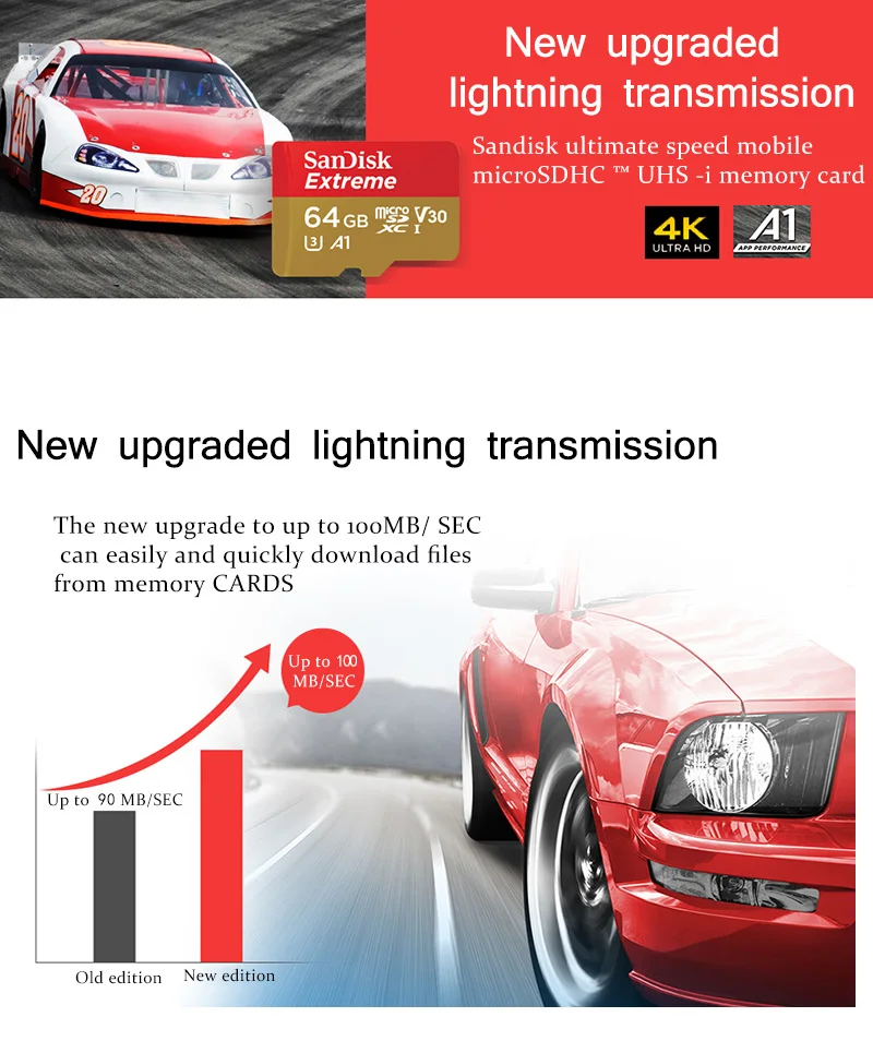 Sandisk карта памяти Micro SD, Класс A2, A1, V30, U3, 256 ГБ, 128 ГБ