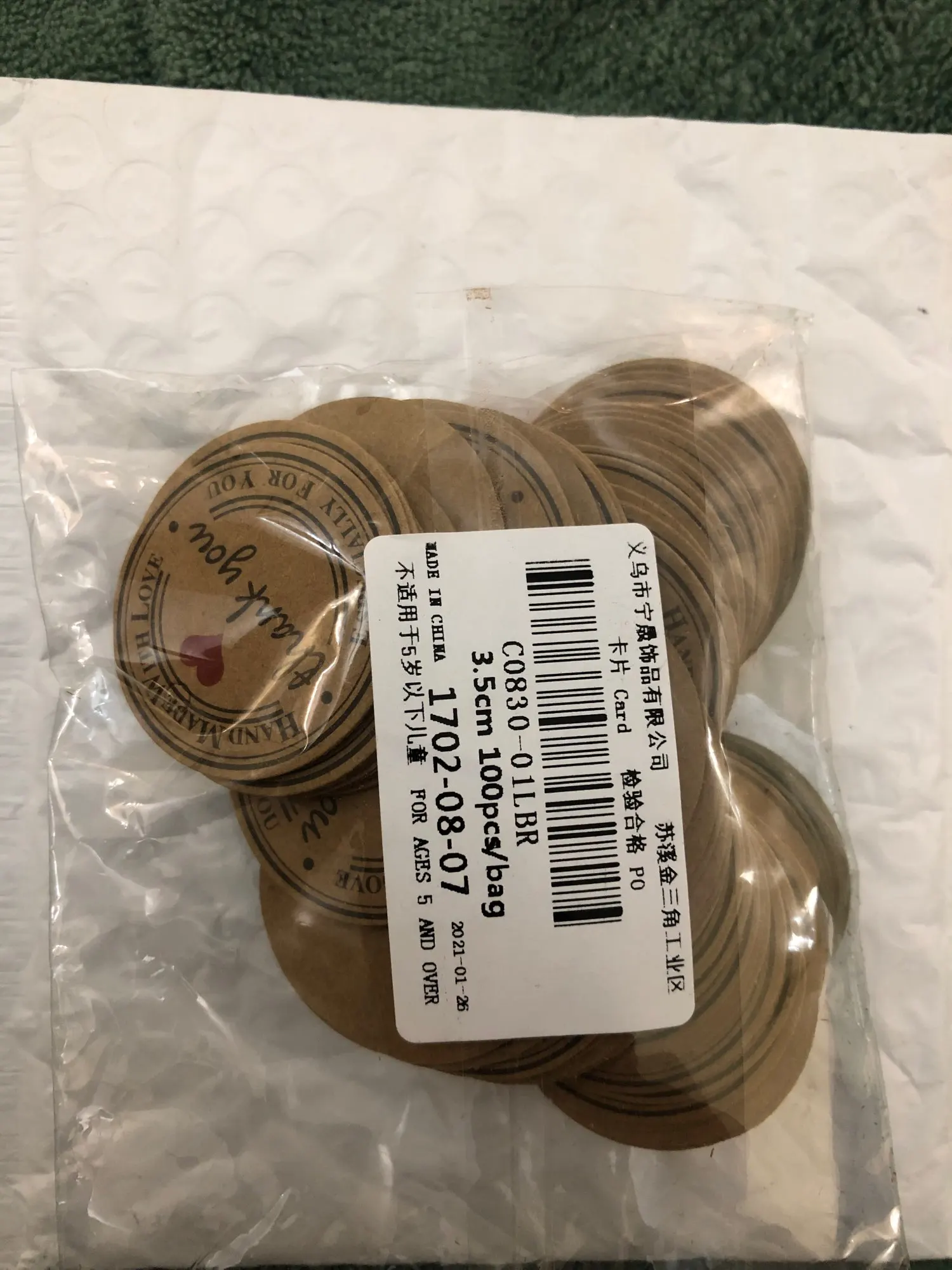 Заказала 20.12.2020, получила 15.01.2021. соответствует описанию, не считала количество, должно быть 100 штук. заказывала со скидкой 1,90$ и бесплатной доставкой, сейчас почему то доставка около 1$. Заказывать с платной доставкой не буду, хотя хотела ещё раз сделать заказ на другие бирки. с продавцом не общалась.