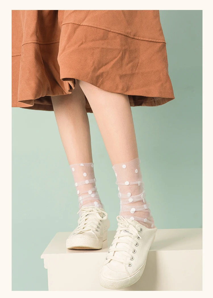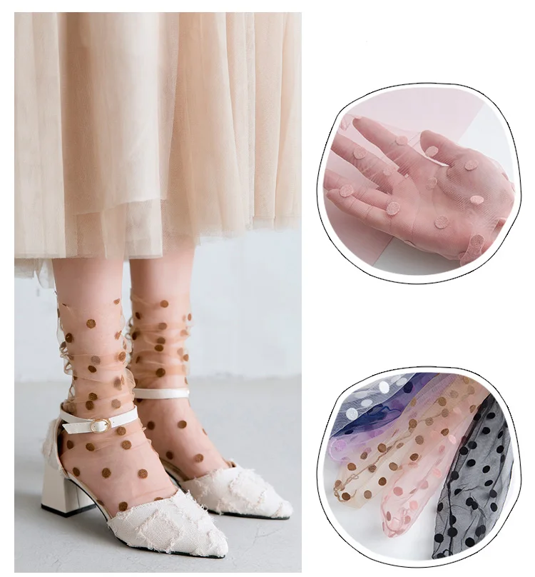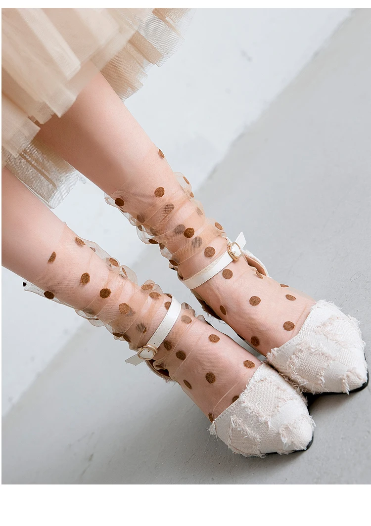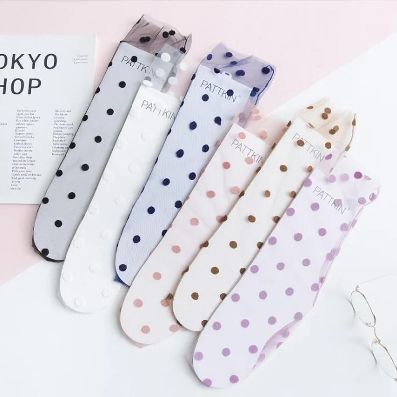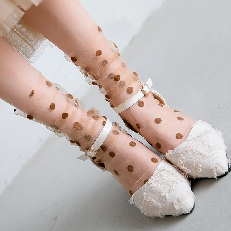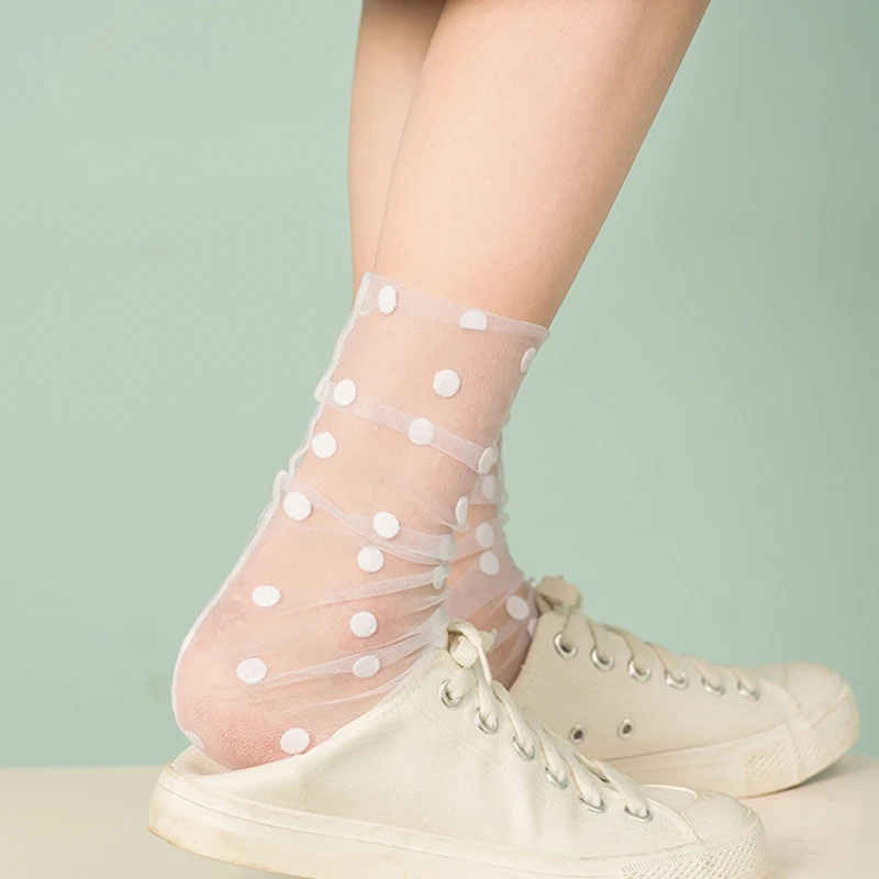Сексуальные шифоновые носки в горошек, женские прозрачные тонкие тюлевые носки, Модные дышащие сетчатые носки для девочек, длинные носки, женские носки
