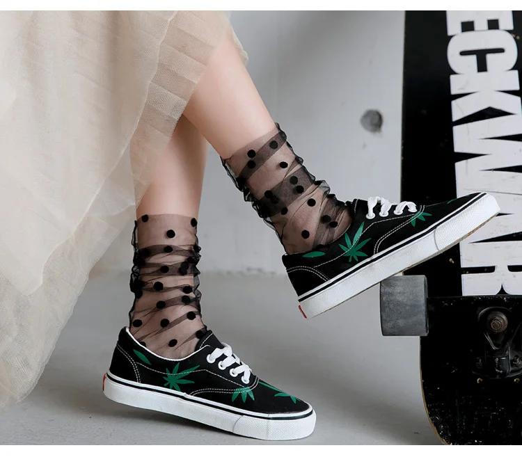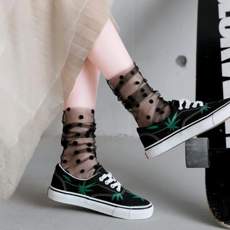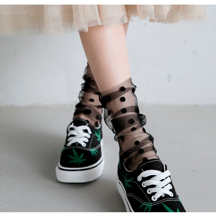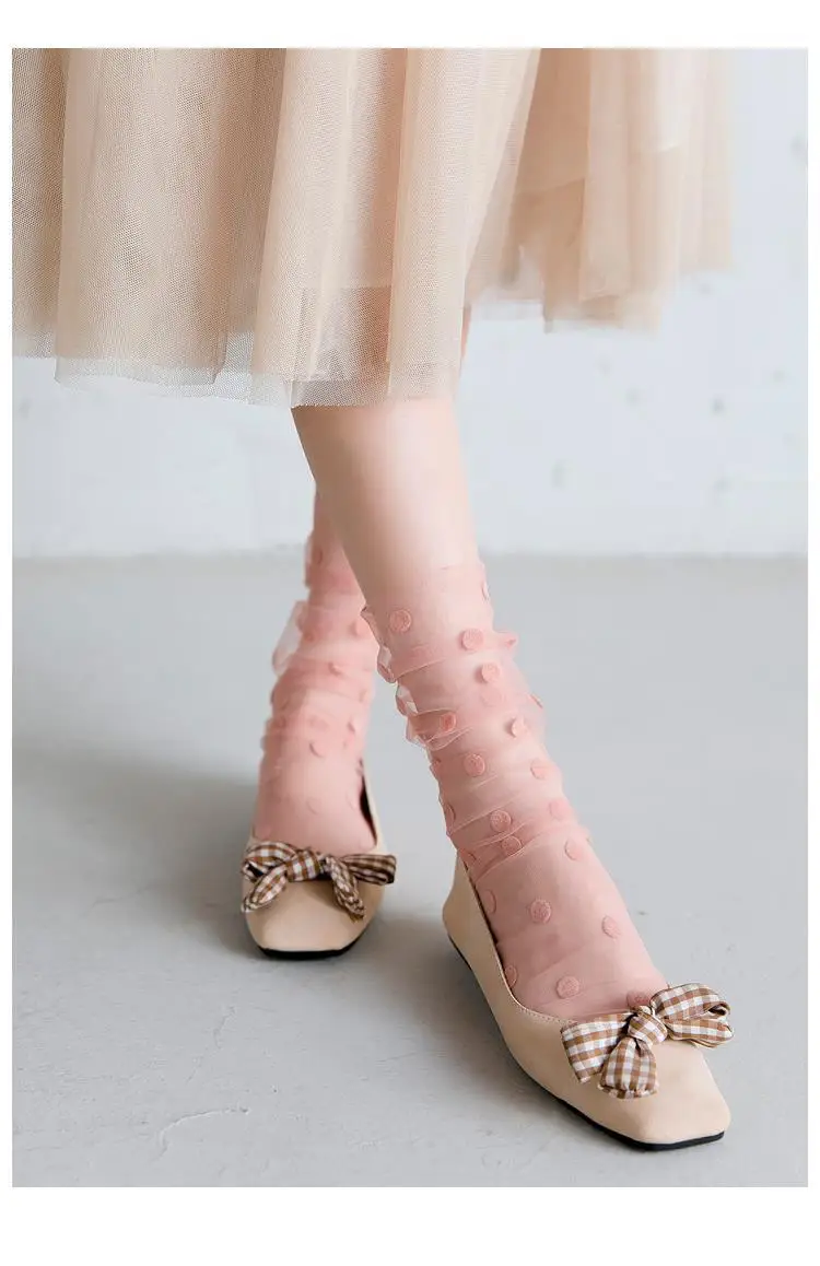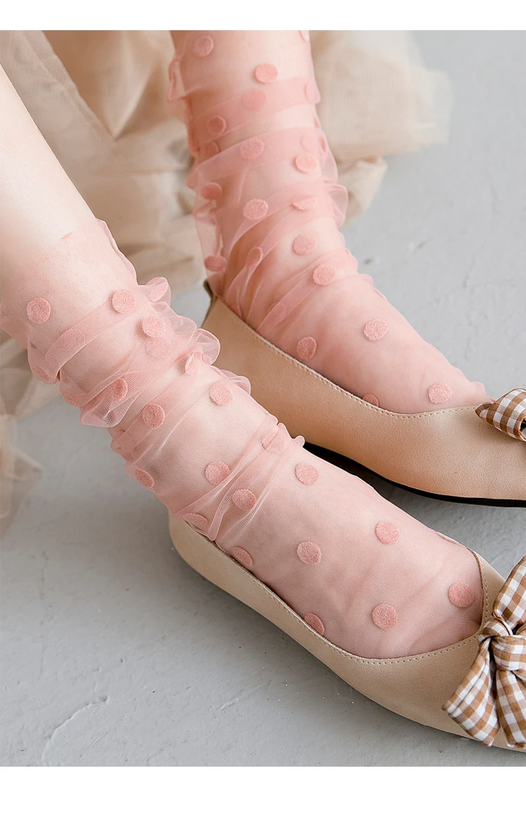 Сексуальные шифоновые носки в горошек, женские прозрачные тонкие тюлевые носки, Модные дышащие сетчатые носки для девочек, длинные носки, женские носки