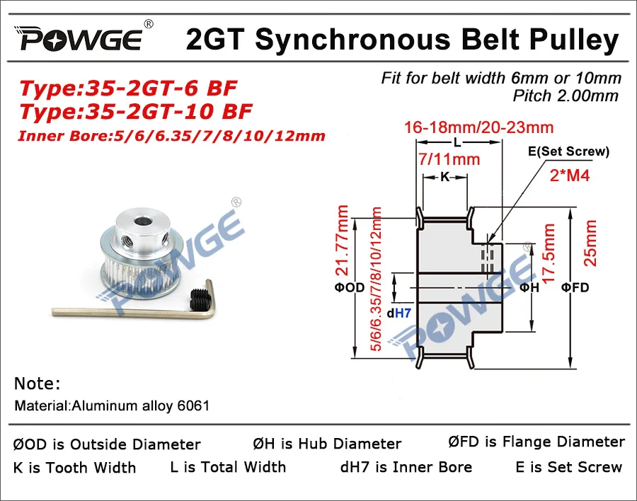 (35 зубьев2GT шкивы имеют диаметр отверстия5/6/6.35/7/8/10/12 мм)