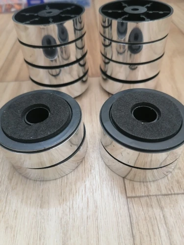 Отличные амортизирующие ножки, полностью соответствуют описанию.. Покупал для акустических систем Радиотехника S-90. На родных пластиковых ножках от звука резонировал деревянный пол в доме, появлялись лишние от стоящих на полу вещей звуки, дребезжание. На этих - всё отлично, посторонние звуки исчезли! Отправили быстро, дошло за 20 дней. Отличные бюджетные ножки, рекомендую.