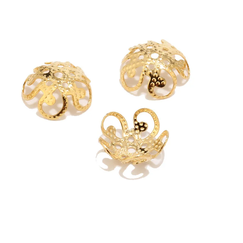 40 шт.лот 304 нержавеющая сталь Золотой филигранный цветок 6 мм 10 ...