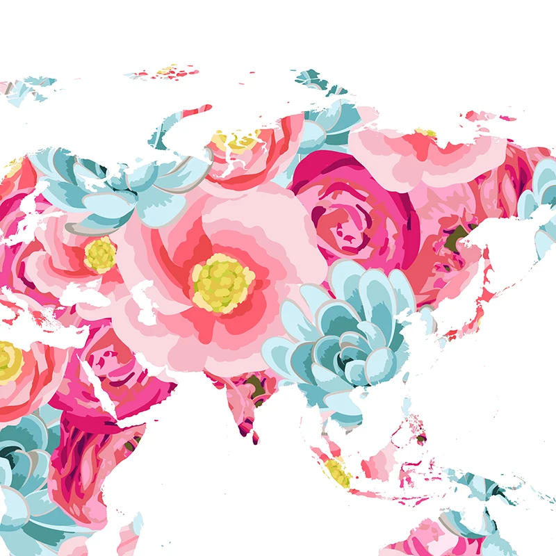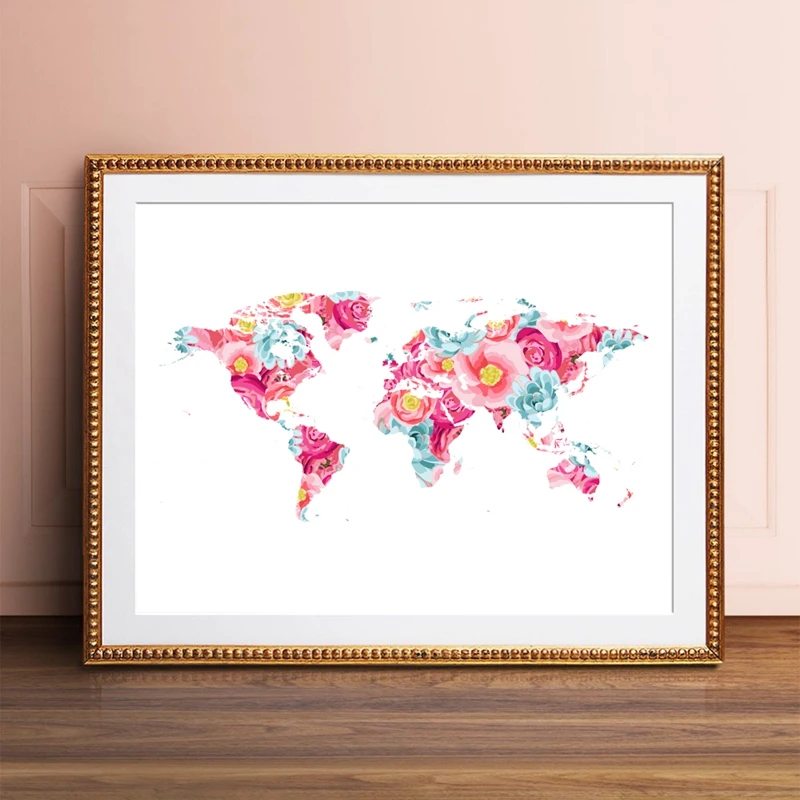 ThemeFloral Watercolor Map Posters Wall Art Print