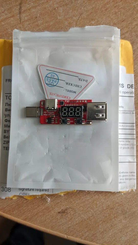 Все в порядке, как в описании, продавец и продукт рекомендуются. Протестировано с блоком питания baseus, Срабатывает все напряжения 5, 9, 12, 15, 20. Прибыло около 2 месяцев, очень хорошо для короны.