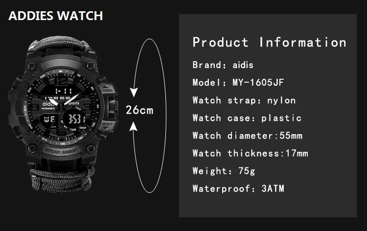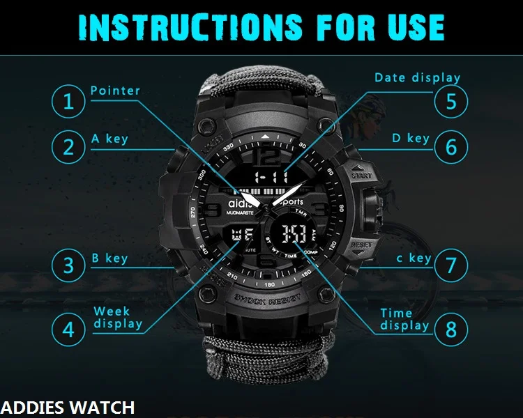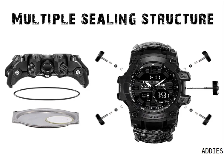 Многофункциональные водонепроницаемые военные тактические часы ADDI...