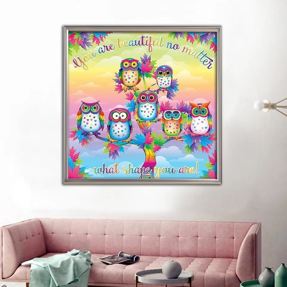 EverShine Diamond Embroidery Full Display Cartoon Owl 5D Diamond Painting Cross Stitch Animals Picture Of Rhinestones Wall Decor