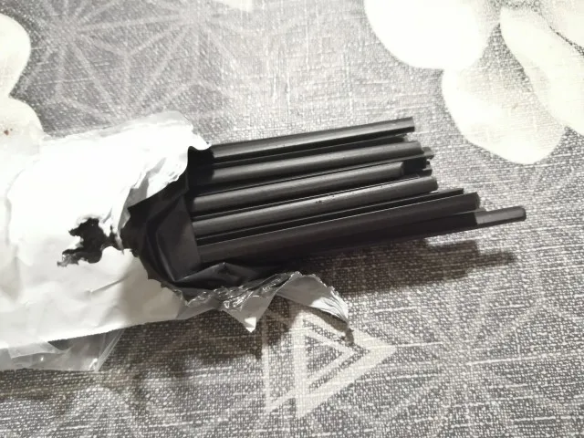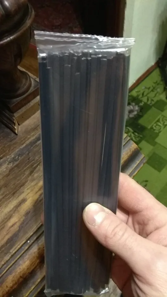 Доставка быстрая, видимо потому что шла сборкой с другим товаром от другого продавца. Вид электродов самый удобный для пайки, ещё не тестировал, но как показывает практика РР от китайского бампера самый хорошо паяльный РР пластик..