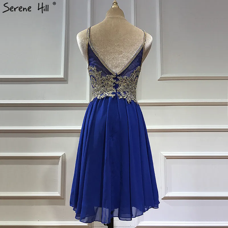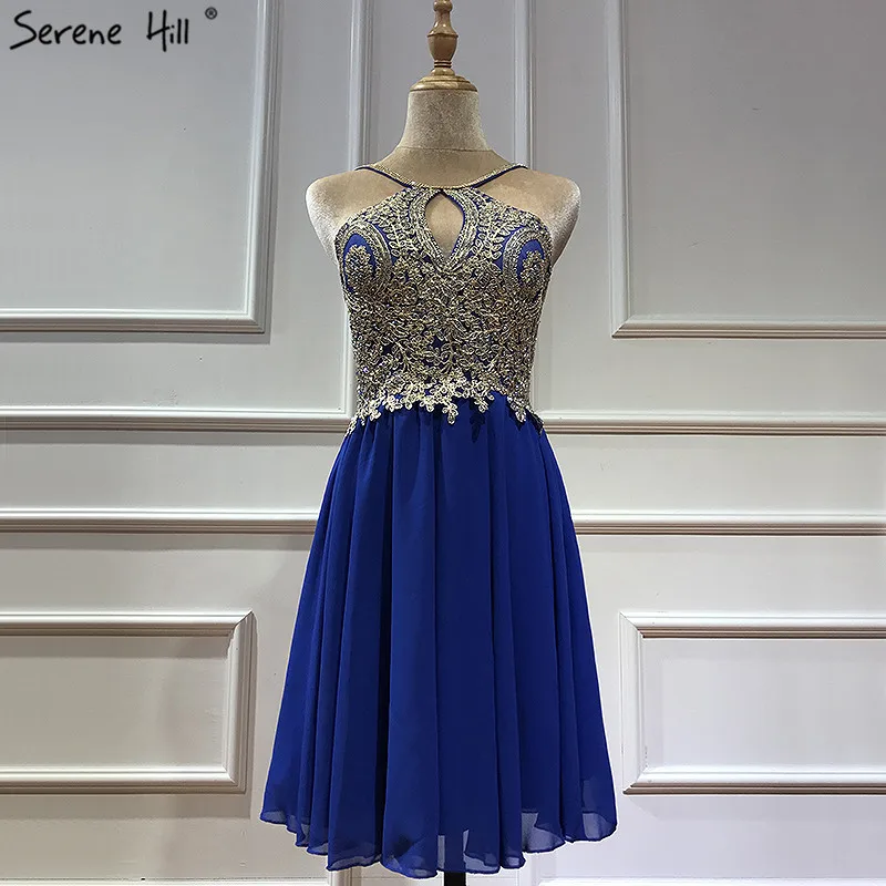 Сексуальные коктейльные платья синего цвета без рукавов со стразами; Модные вечерние платья длиной до колена; 2021 Serene Hill LA60954