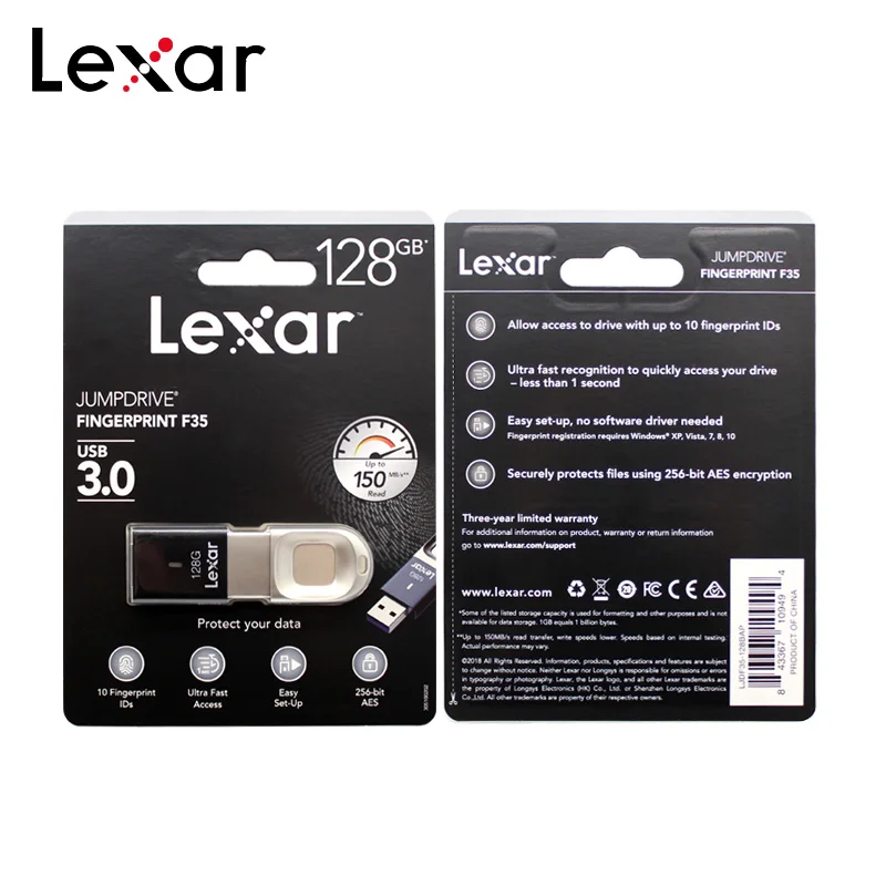 Lexar JumpDrive отпечаток пальца F35 флеш-накопитель USB 3,0 32 Гб 64 Гб 128 ГБ портативный флеш-накопитель для ПК