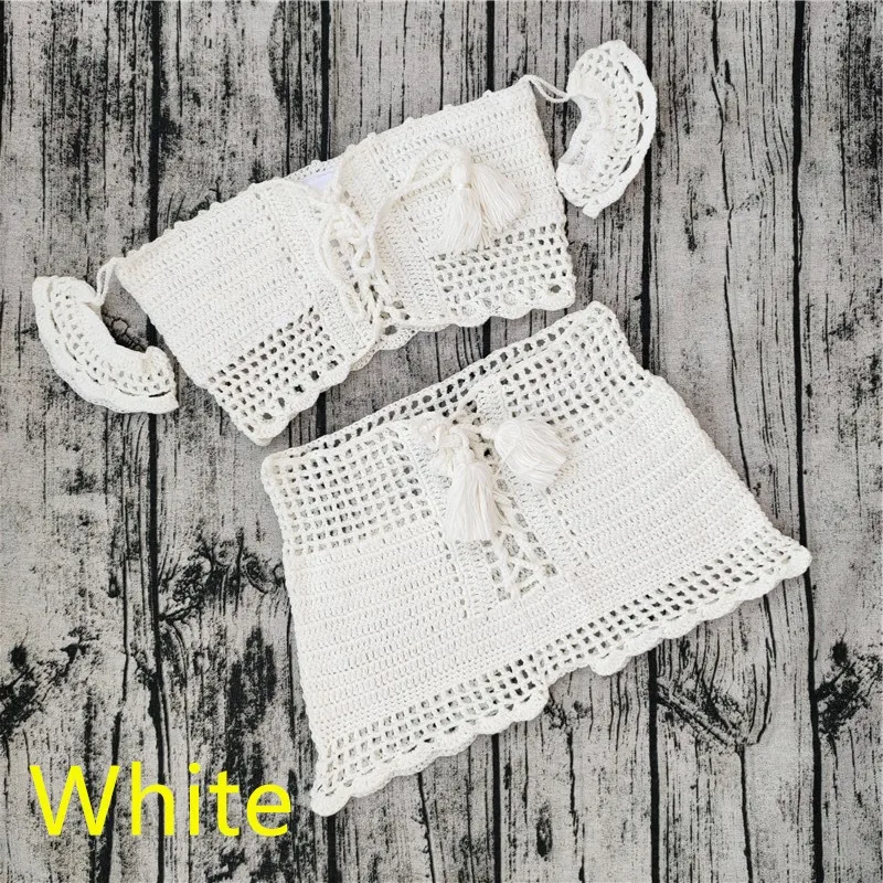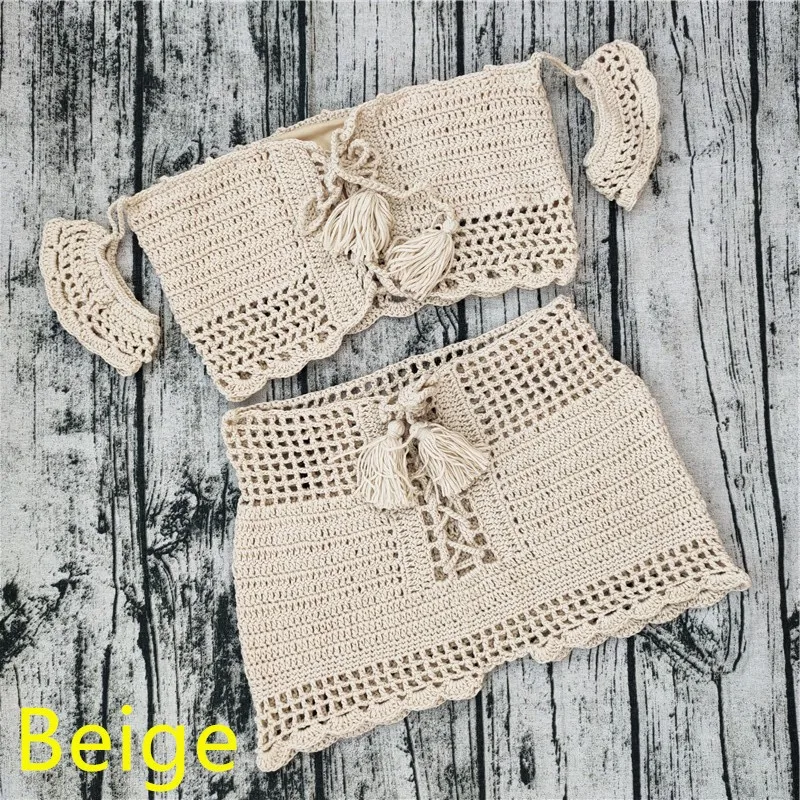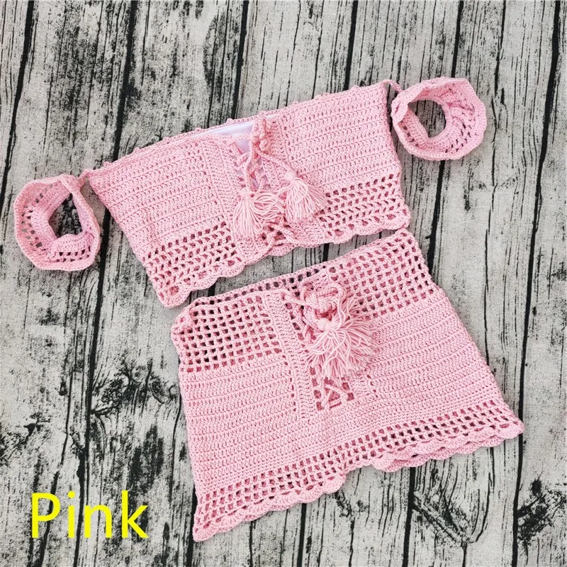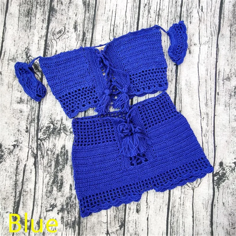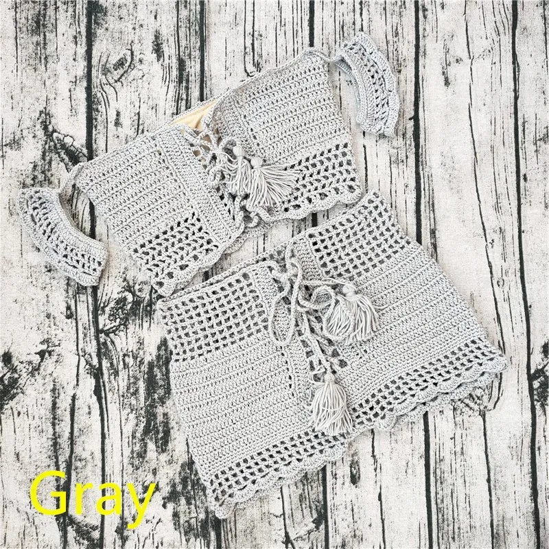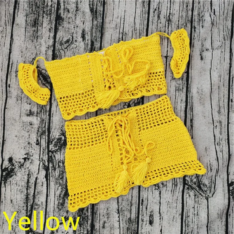 12 цветов, модный пляжный бикини, вязаный купальник, вязаный крючком, богемный стиль, открытые плечи, купальный кисточки ручной работы, сексуальное бикини