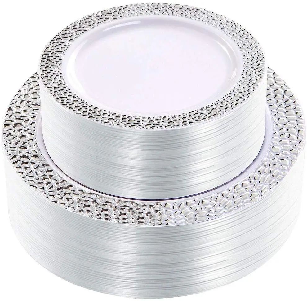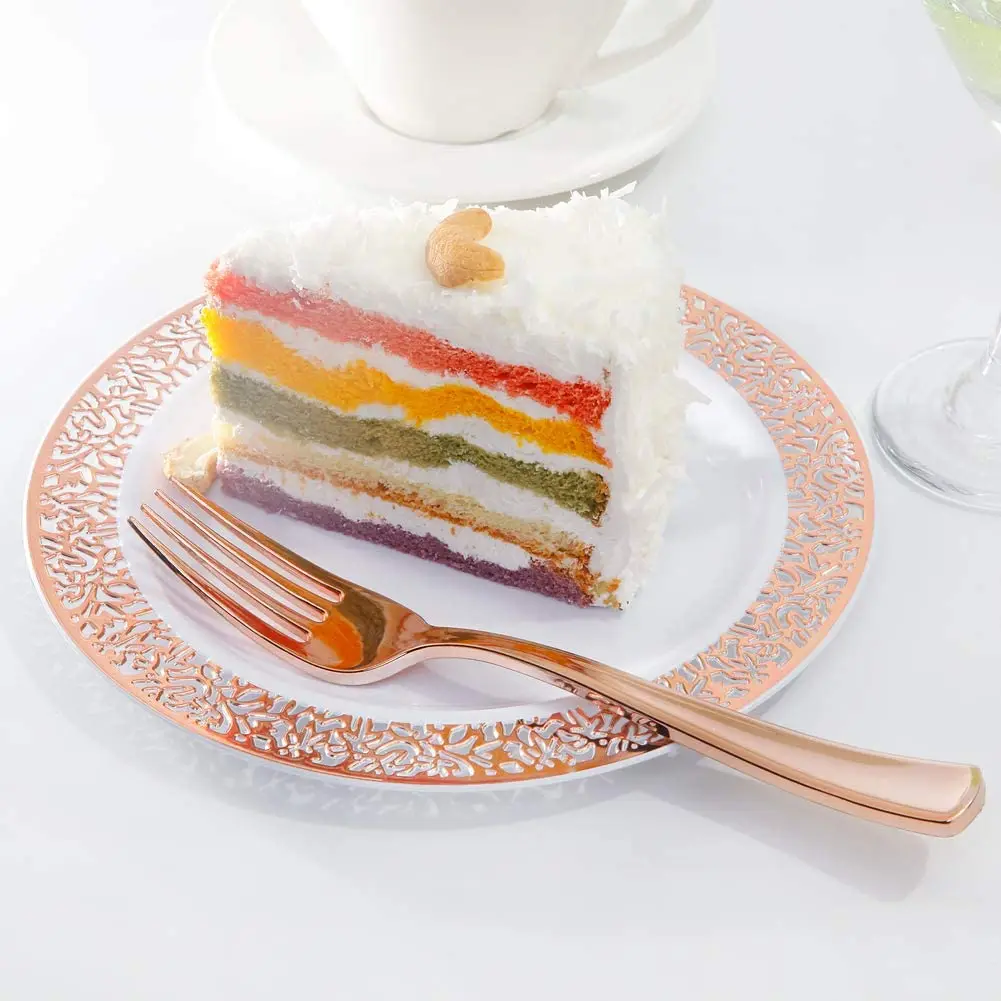 Пластиковые тарелки с кружевом, розовое золото, 25 шт. в упаковке, для свадьбы, причудливые тарелки для салата и тарелка для закусок шт. на все праздники и случаи жизни
