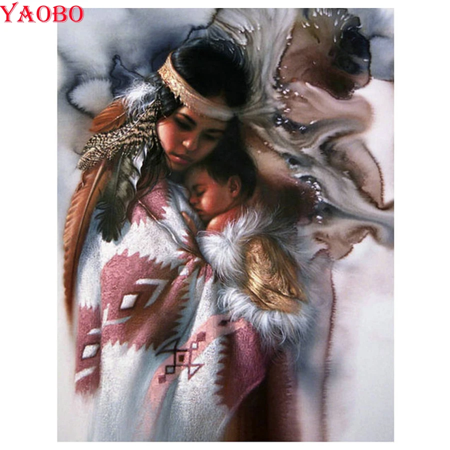 Алмазная живопись 5D сделай сам, картина с индейскими мотивами, с квадратнымикруглыми стразами, 3d-вышивка крестиком
