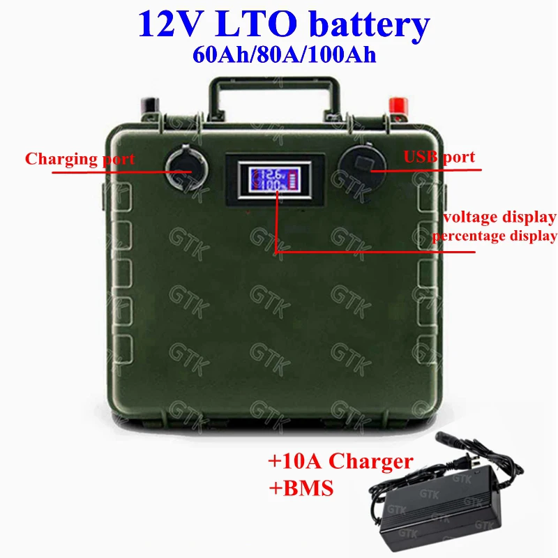Водонепроницаемый Литий-титанатный аккумулятор LTO 12 в 60 ач 80 Ач 100 Ач 12 В с BMS 100 А для инвертора, электрической лодки, фототехники + зарядное устройство 10 А