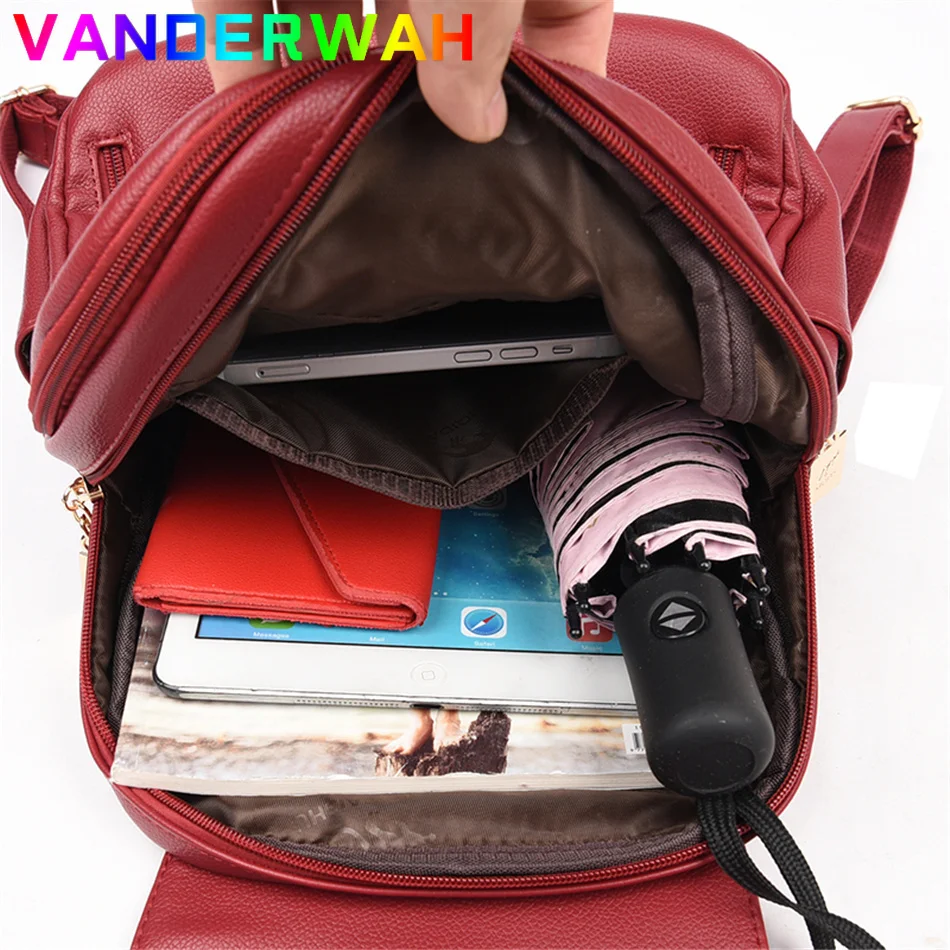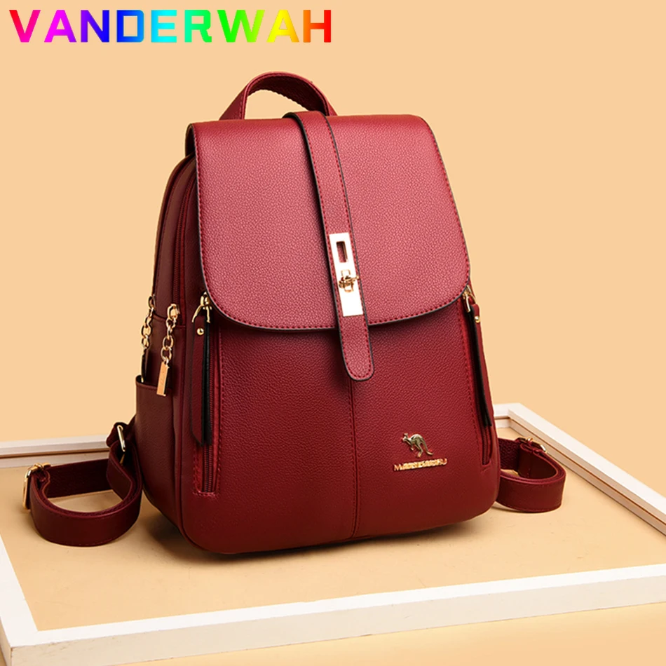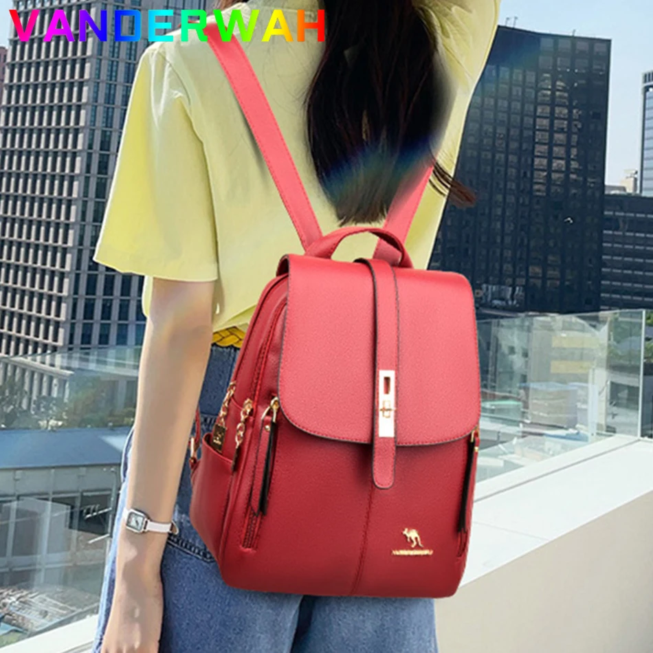 Рюкзак женский из мягкой кожи, винтажная Повседневная Дорожная сумка на ремне, школьный ранец, 5 цветов