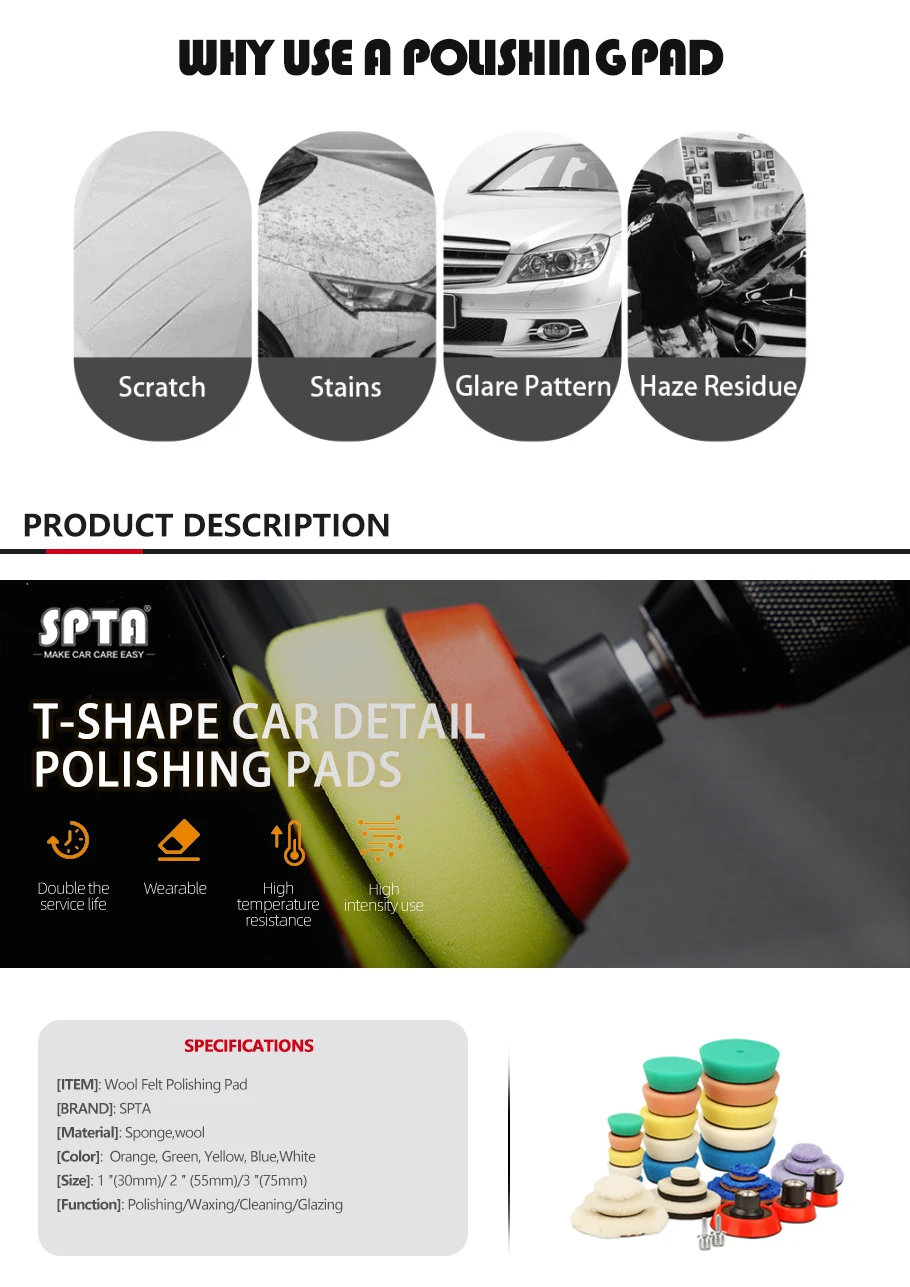 SPTA 32 шт., Т-образные полировальные колодки для деталей автомобиля, 30 мм, 50 мм, 80 мм