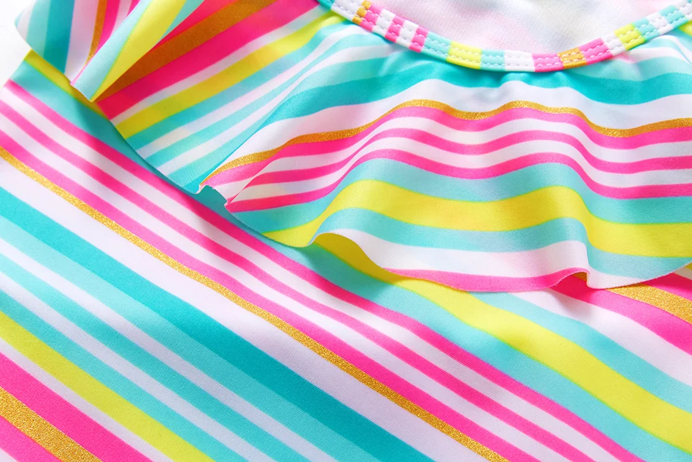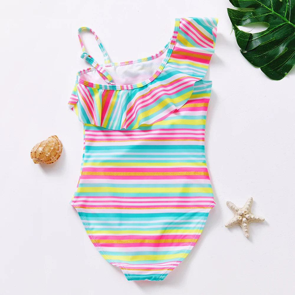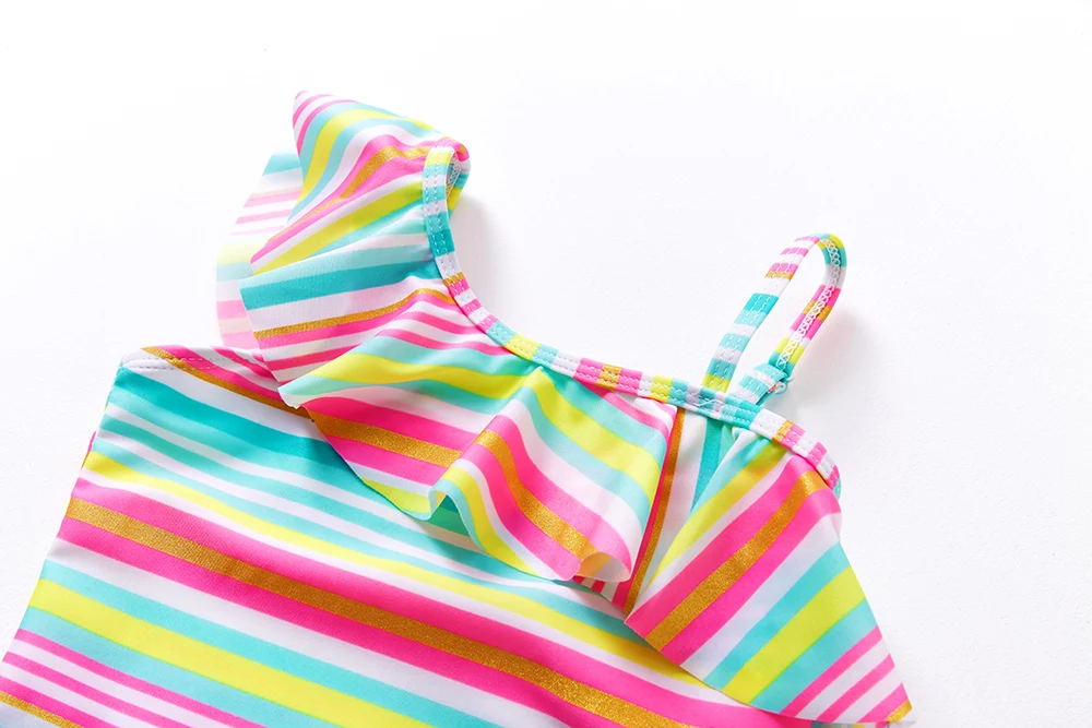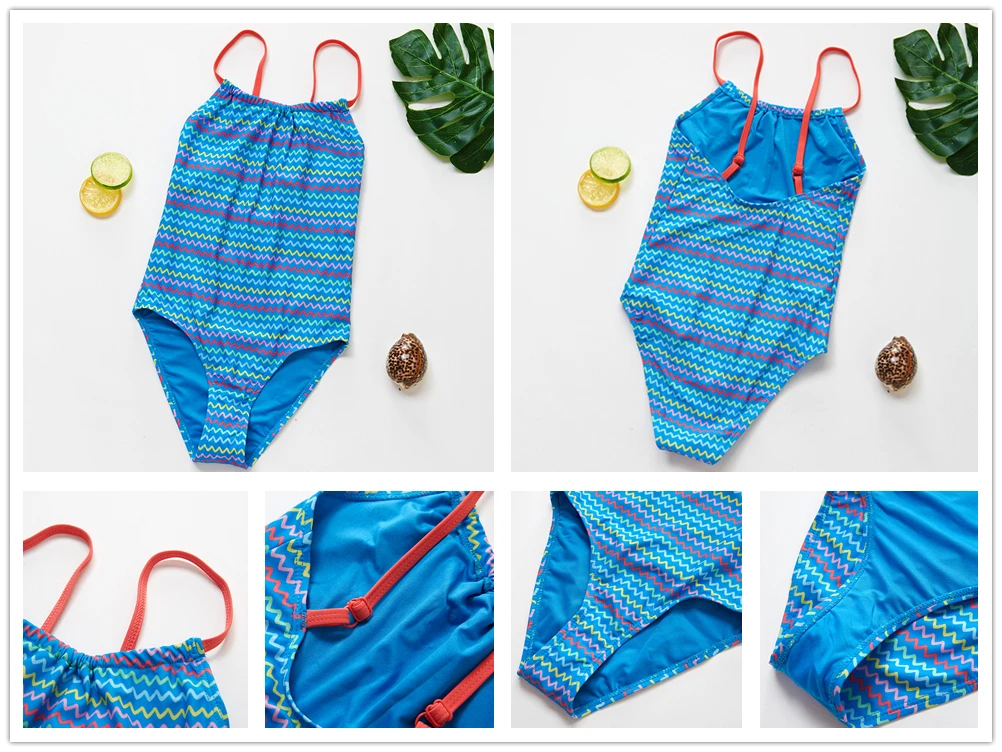 Купальники для девочек от 2 до 14 лет, слитный купальник в полоску для девочек, детская пляжная одежда для купания, Suit-1107MIX
