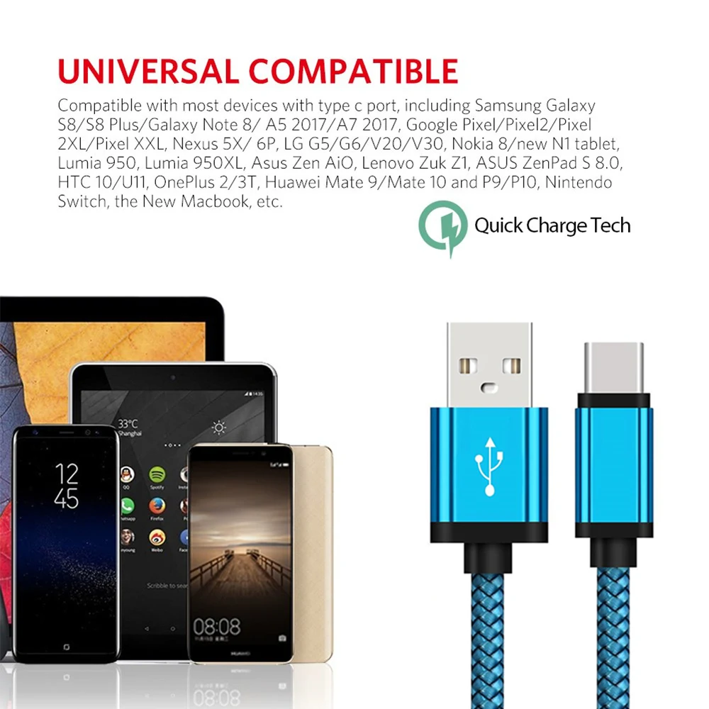 Кабель USB Type-C для быстрой зарядки Samsung Galaxy Note 8 S8S9 A3...