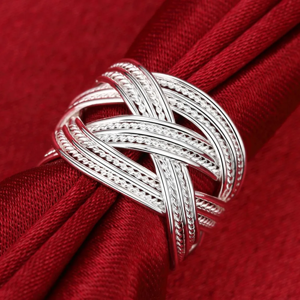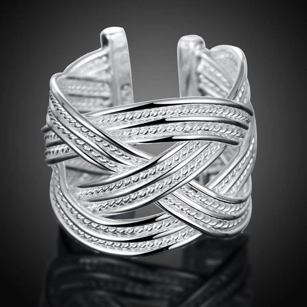 Серебряное большое открытое кольцо из стерлингового серебра 925 пробы, вплетенные круглые кольца, регулируемые для женщин и мужчин, модные ювелирные изделия