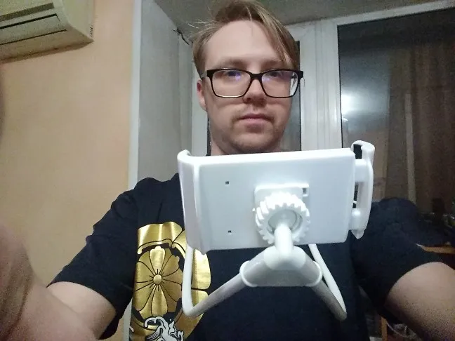 Держатель обалденный, очень удобно особенно если нужно руки свободные а отрываться от экрана не хочется.