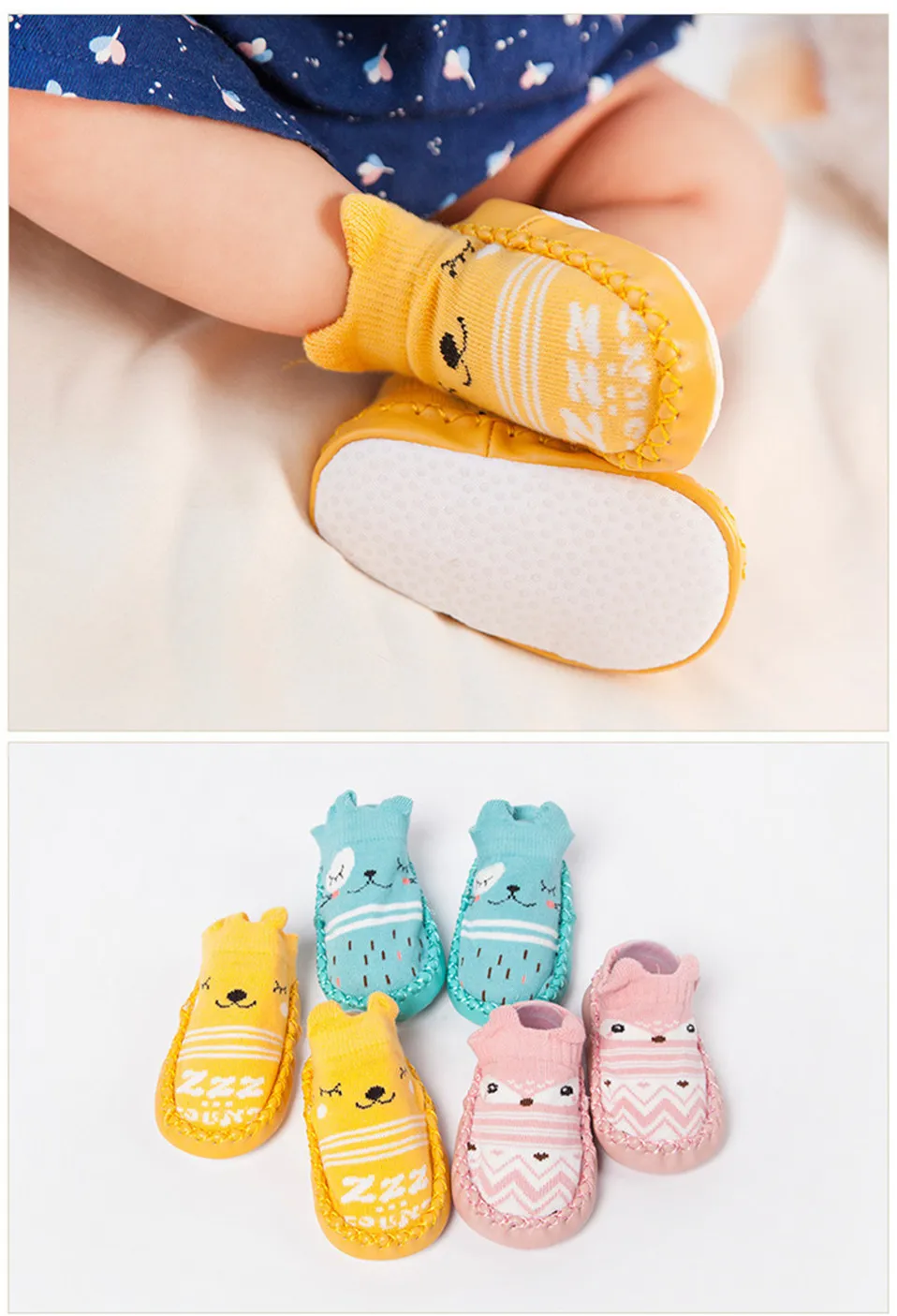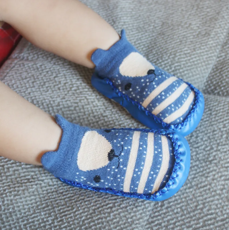 Модные осенне-зимние носки для маленьких мальчиков и девочек с резиновой подошвой, носки с мягкой подошвой, нескользящие носки с мультяшным рисунком для новорожденных